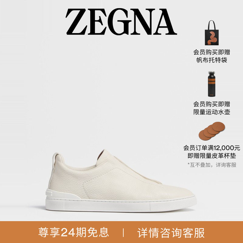 📚 ZEGNA杰尼亚男鞋白色鹿皮Triple Stitch™男士奢华休闲鞋