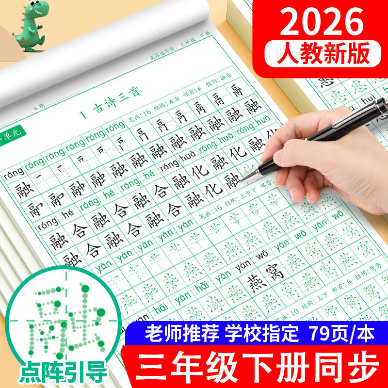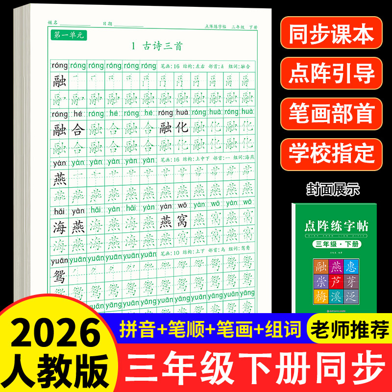 📚 三年级下册练字帖人教版语文同步2026小学生专用同步作文楷书钢笔硬笔描红米字格书法练字本正楷笔画笔顺儿童铅笔描红练习每日一练