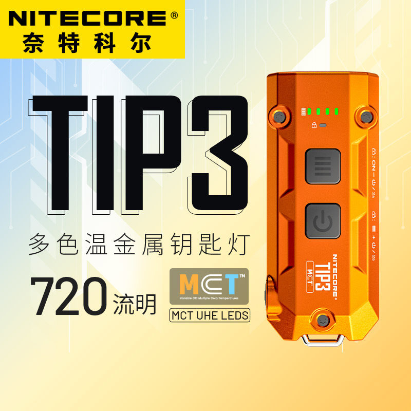 📚 奈特科尔tip3迷你钥匙扣灯强光三色温充电户外edc随身应急小手电
