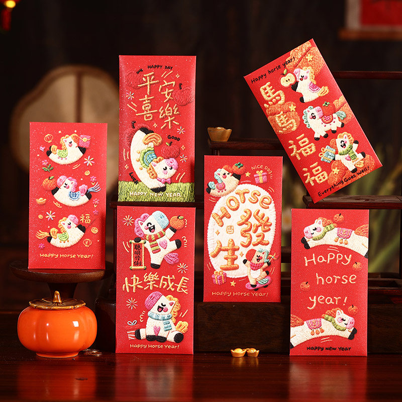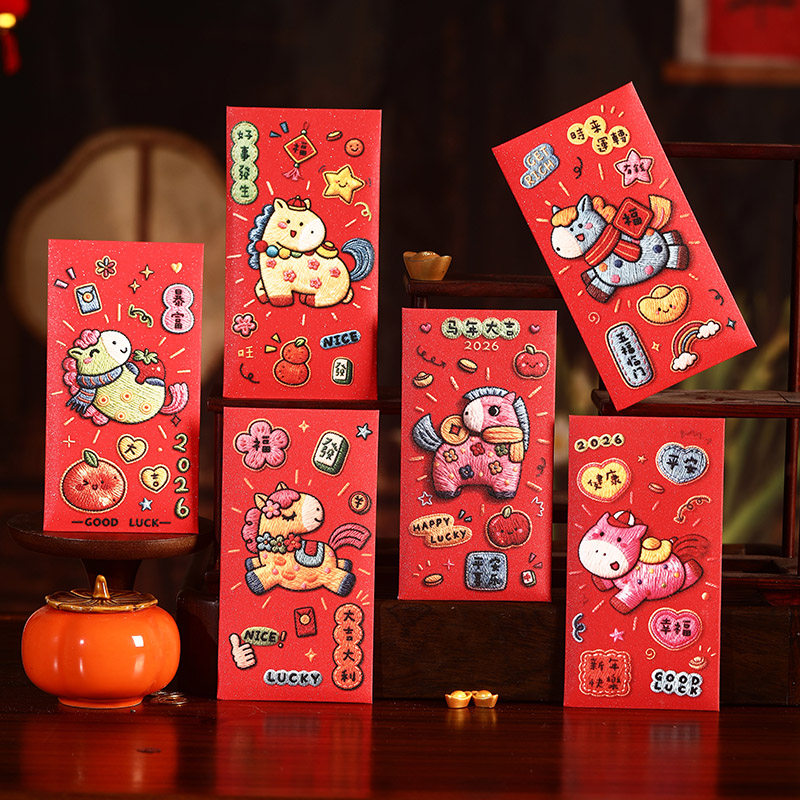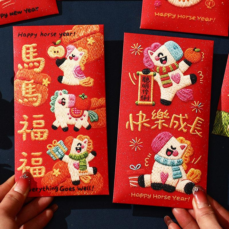 📚 卡通红包马马福福定制马年3D效果卡通利是封春节压岁包新年2026