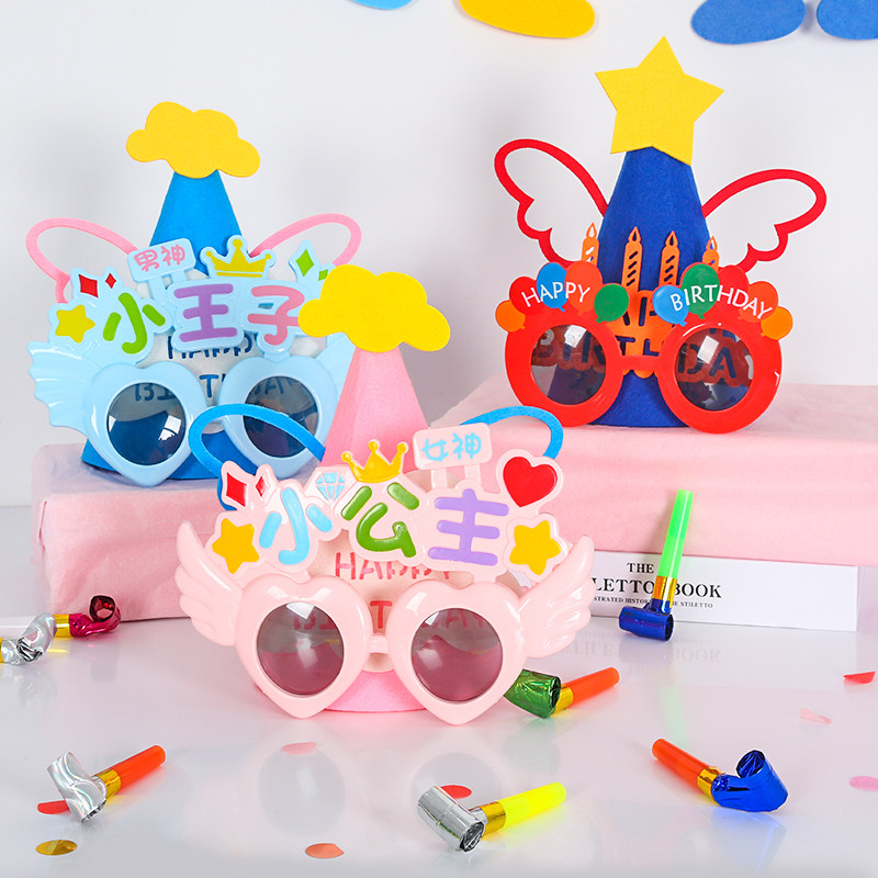 📚 ins儿童生日帽子装饰场景布置头饰眼镜拍照道具女童男童派对用品