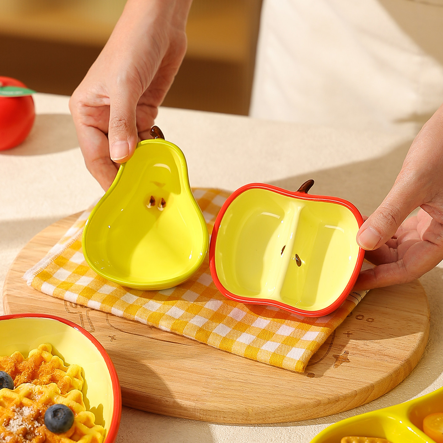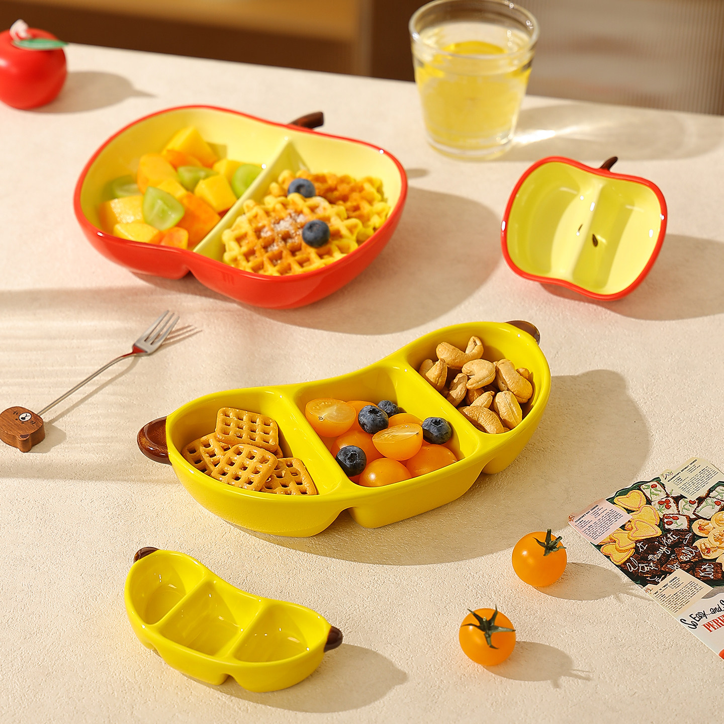 📚 创意可爱的分格盘水果造型盘减脂餐盘子火锅用蘸料碟调味碟干料碟