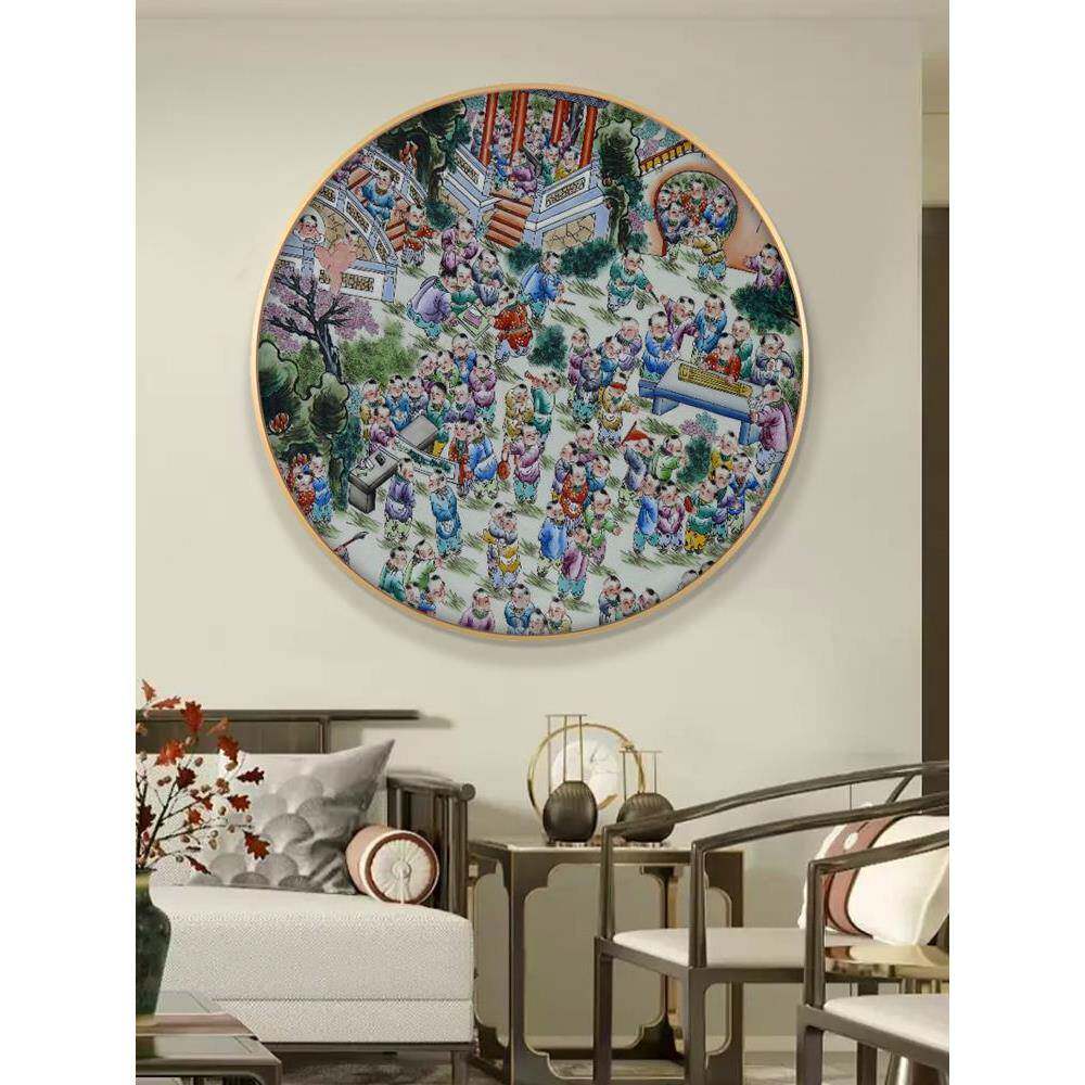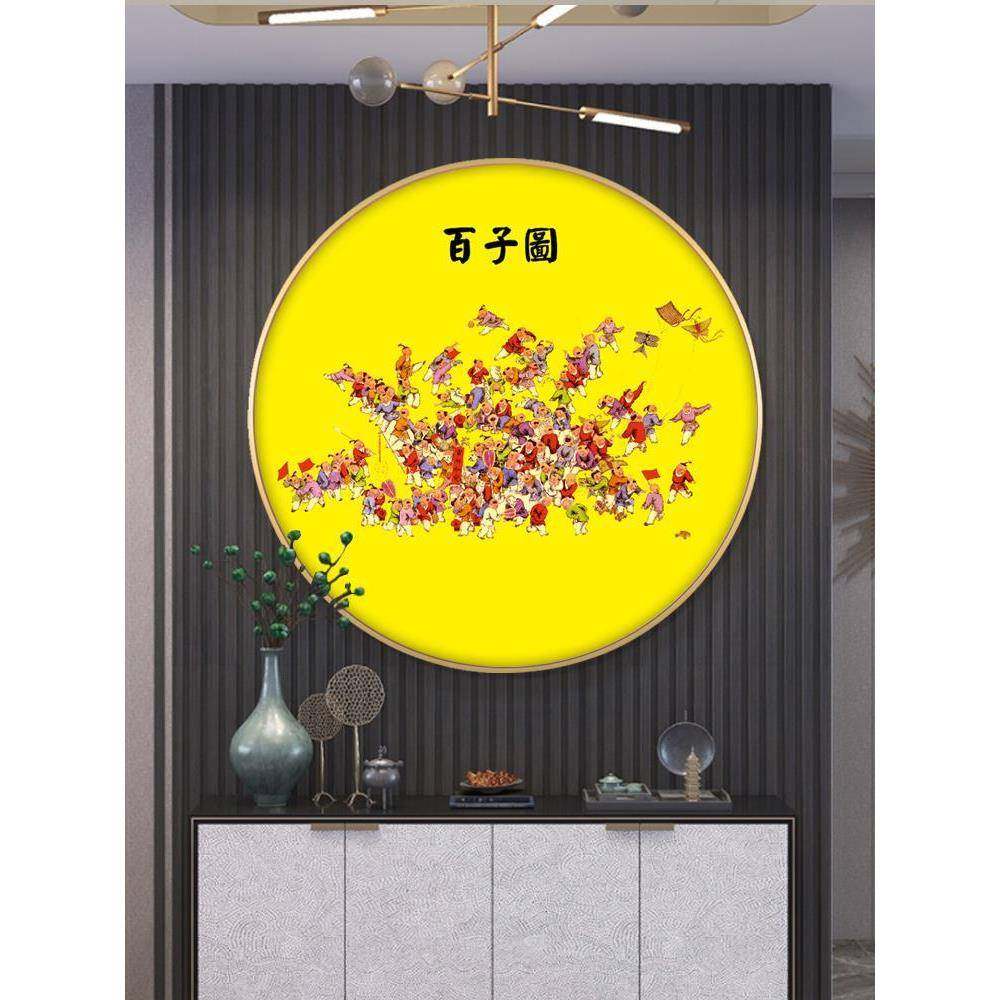 📚 百子图挂画玄关好运纳福百子迎福装饰画子孙满堂福娃壁画客厅圆形