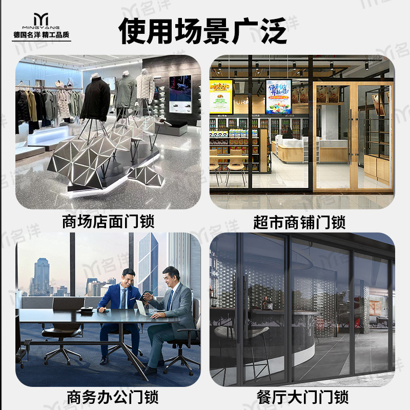 📚 德国名洋U型锁超C级玻璃门锁商铺把手推拉纯铜防盗加长加粗双门