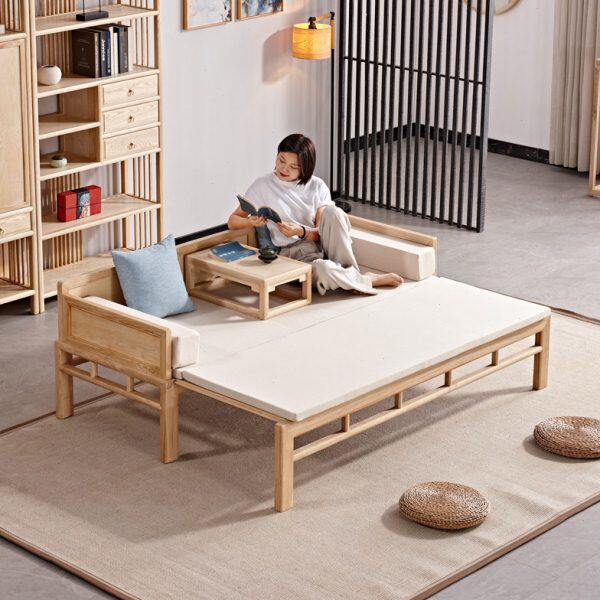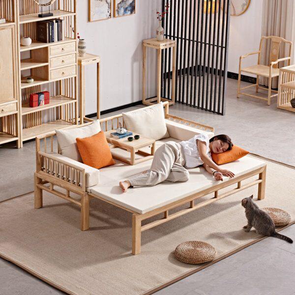 📚 新中式实木罗汉床茶桌椅组合小户型客厅沙发推拉床伸缩俩用贵妃榻