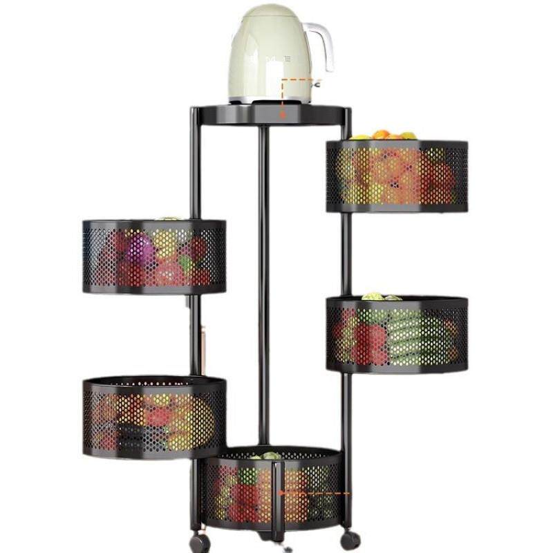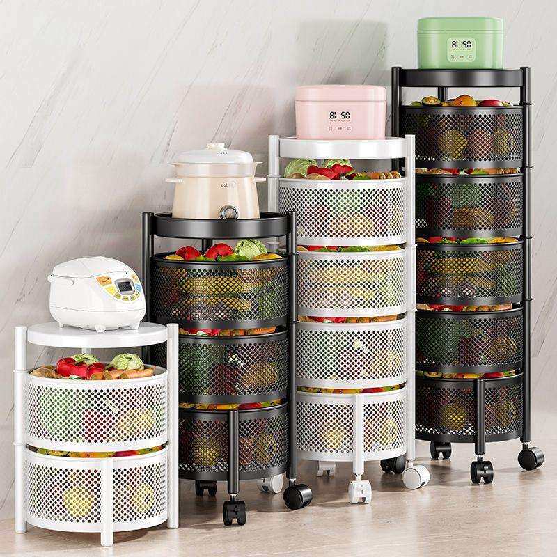 📚 多层可旋转移动厨房置物架小推车蔬菜水果收纳储物圆型方型