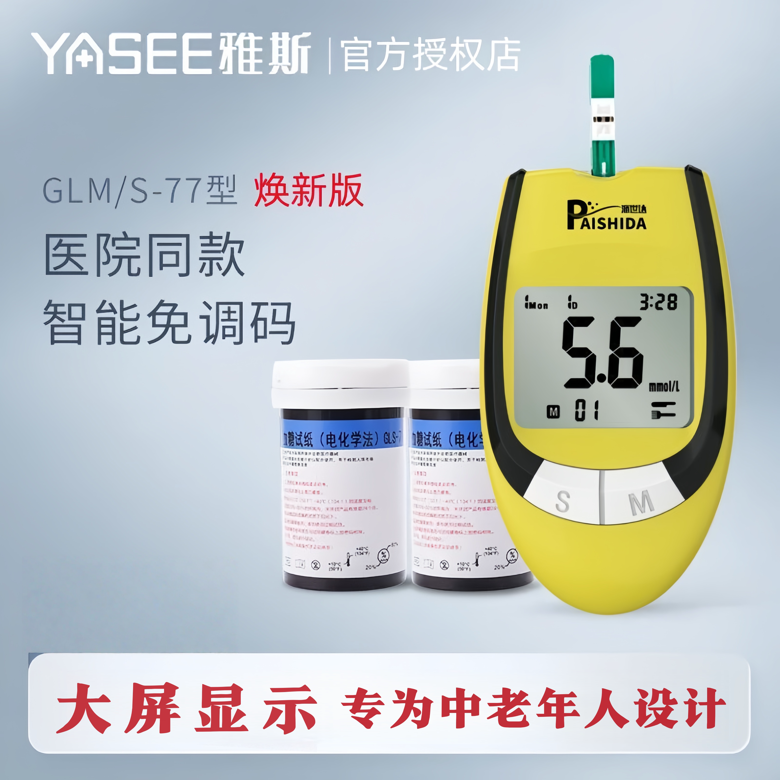 📚 雅斯GLM-77血糖仪家用高精准免调码医用血糖试纸密码697,607通用