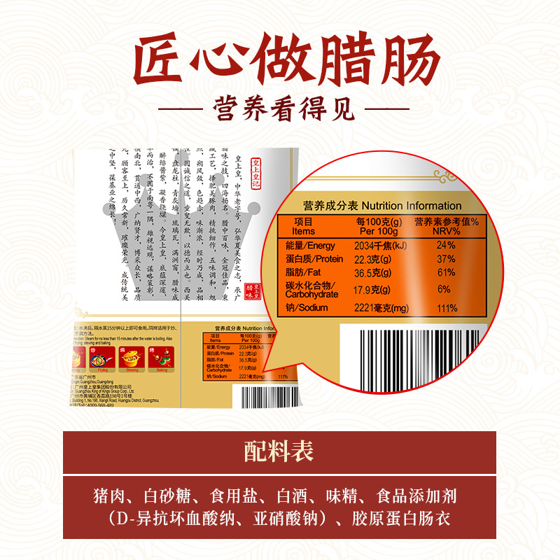 📚 皇上皇如一三包腊肠广式香肠腊肉广东广州正宗腊味特产送礼年货