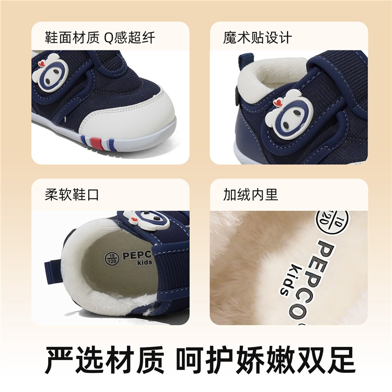 📚 小猪班纳冬季防滑透气男童女童软底学步鞋魔术贴加绒舒适机能鞋