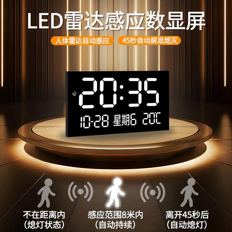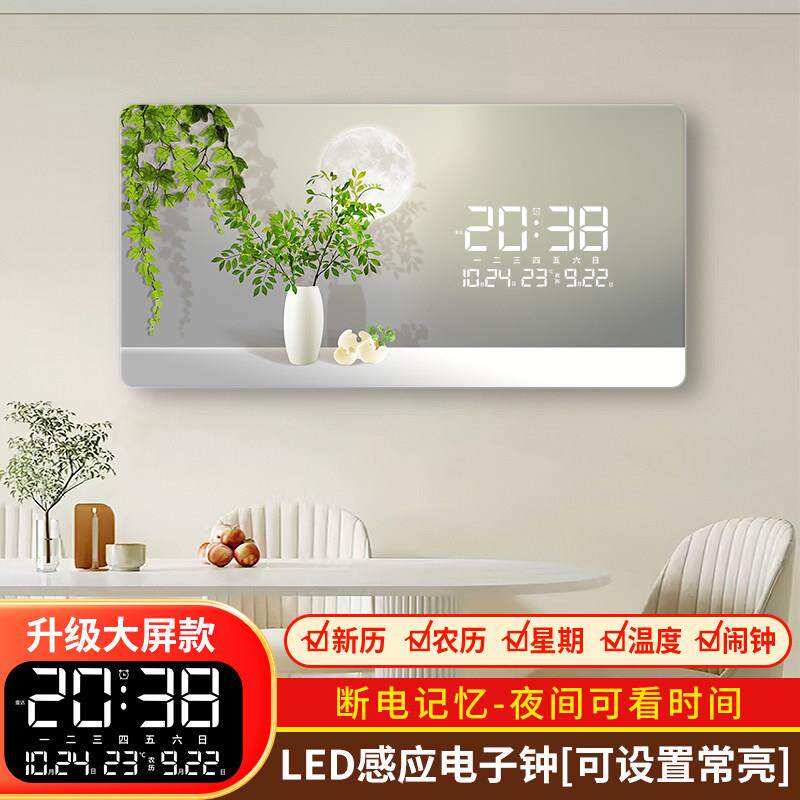 📚 精梭轻奢绿植数字电子时钟挂钟客厅玄关装饰画插电数显屏灯光钟