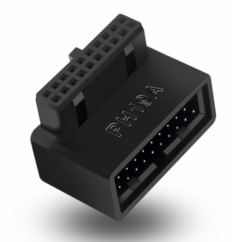 📚 台式电脑主板USB3.019/20P插座90度转向头走线神器装机配件带外壳F-USB3.0插针前置19p/20pin公对母延长直角