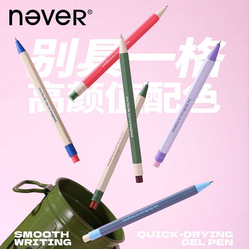 📚 NEVER六角杆金属按动中性笔黑0.5速干重手感质感高颜值商务签字笔