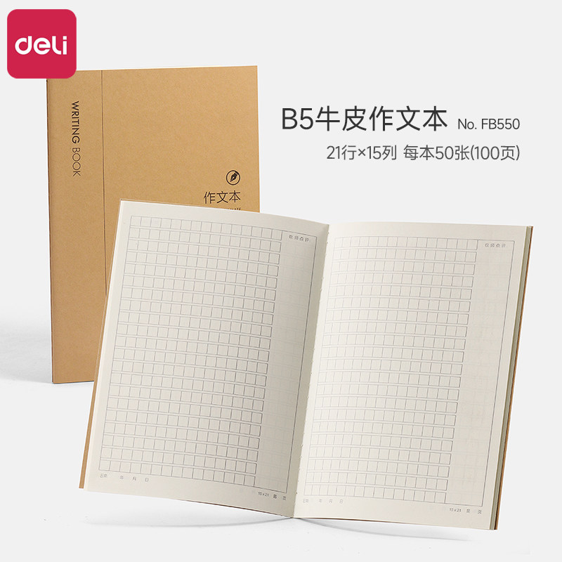 📚 得力B5牛皮作文本小学生专用三年级加厚语文作文簿16K日记本周记本初中生专用写作练习本带修改栏作文本批发