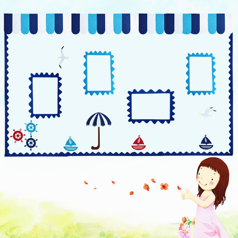 📚 幼儿园海洋风环创材料教室走廊布置主题墙装饰文化黑板报毛毡墙贴