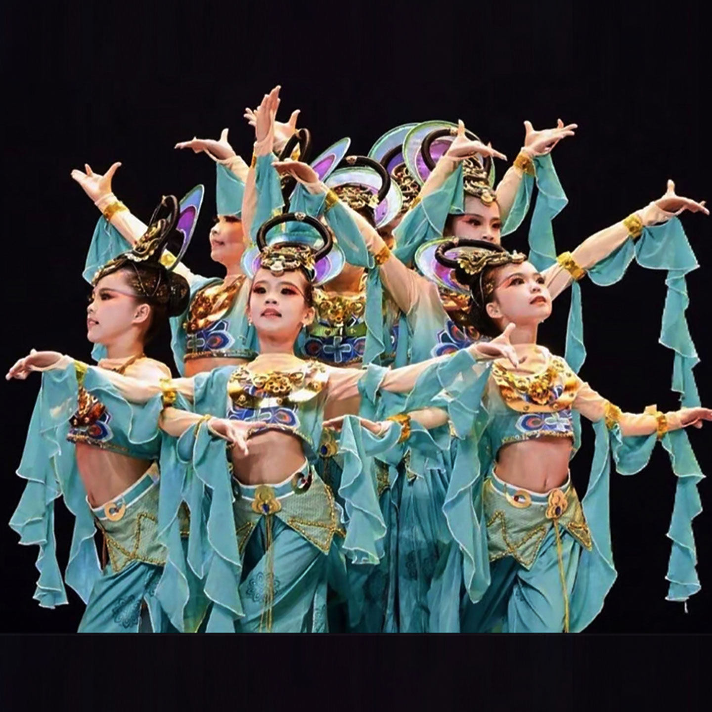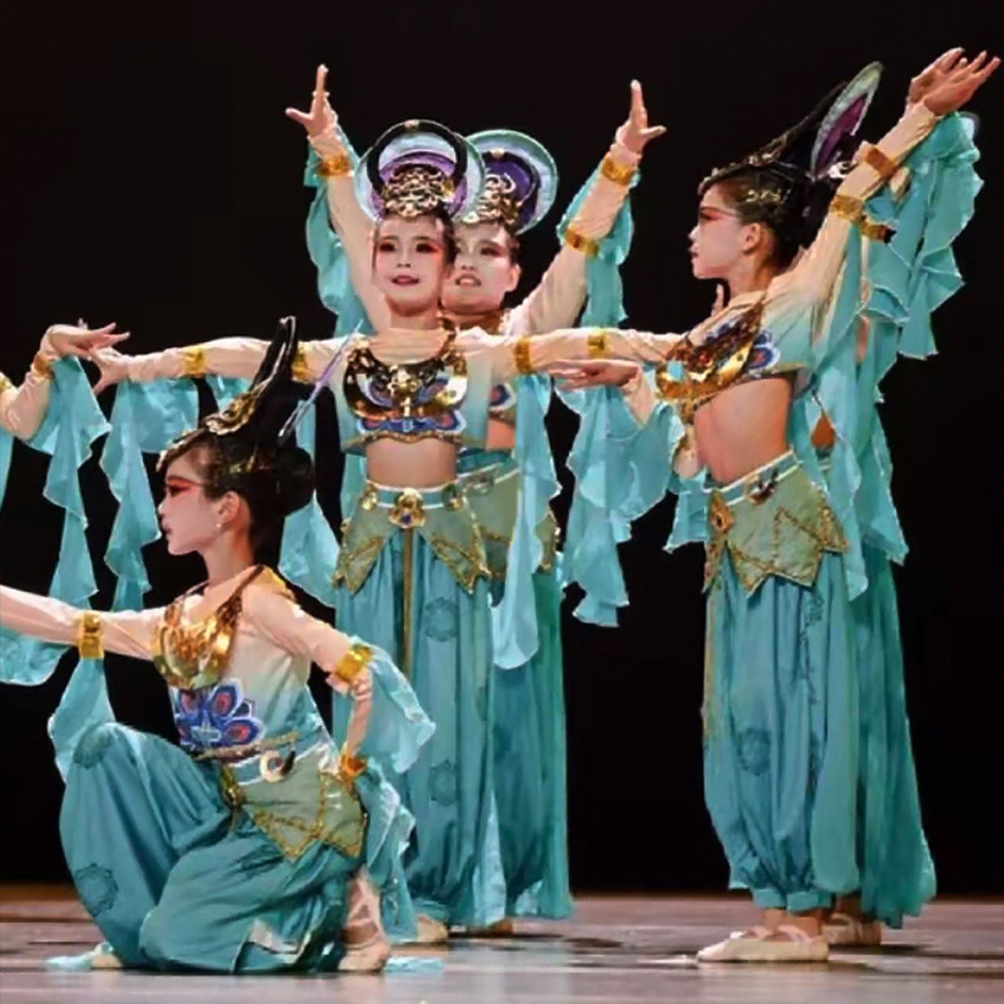 📚 敦煌舞蹈服儿童女独舞长袖古典舞服装遇见飞天天女反弹琵琶演出服