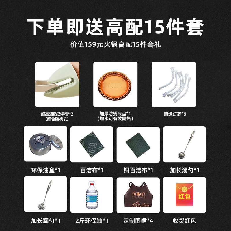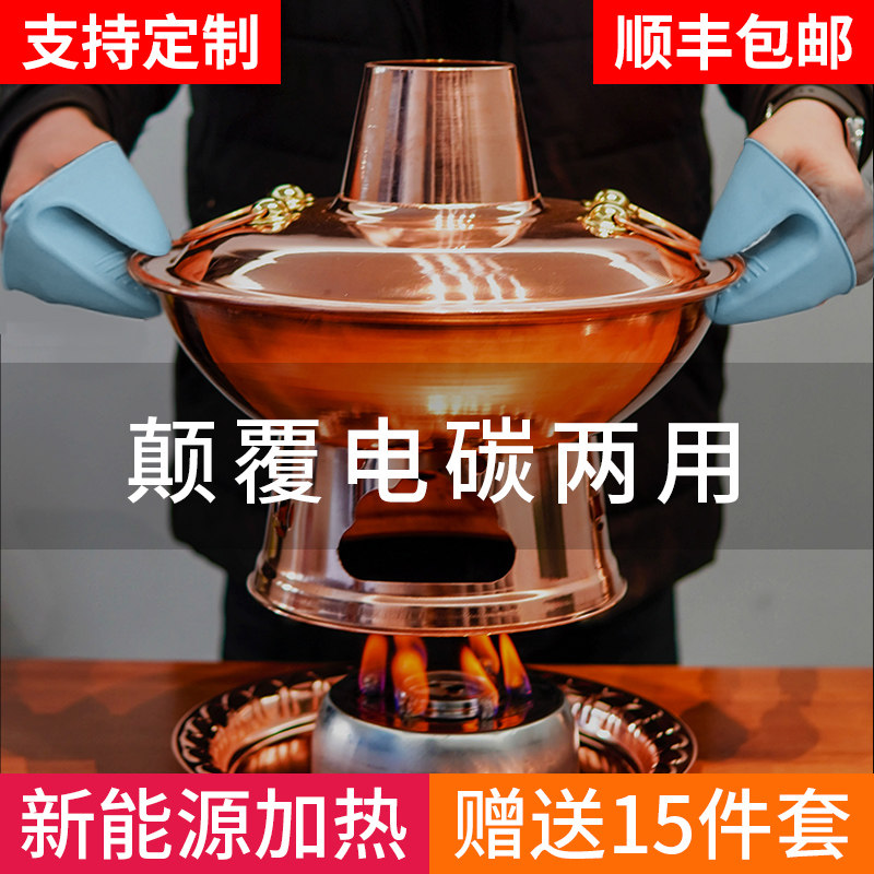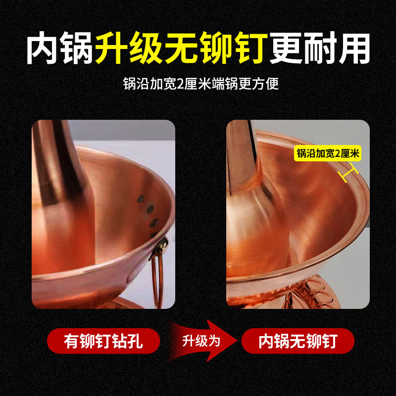📚 环保油铜火锅老北京铜锅火锅商用纯铜家用酒精户外鸳鸯老式紫铜炉