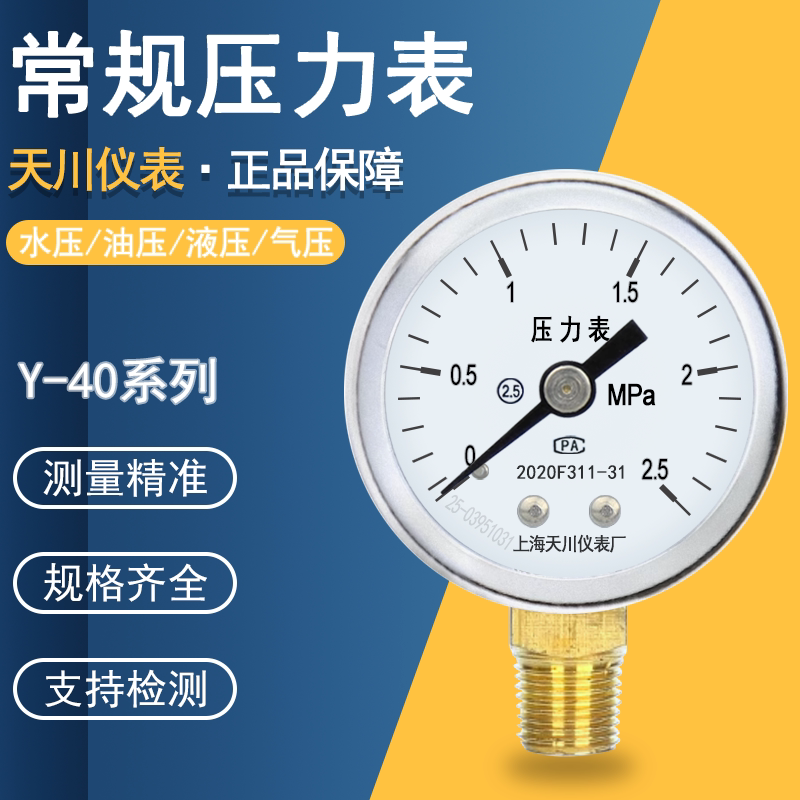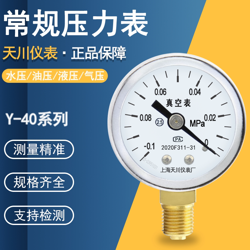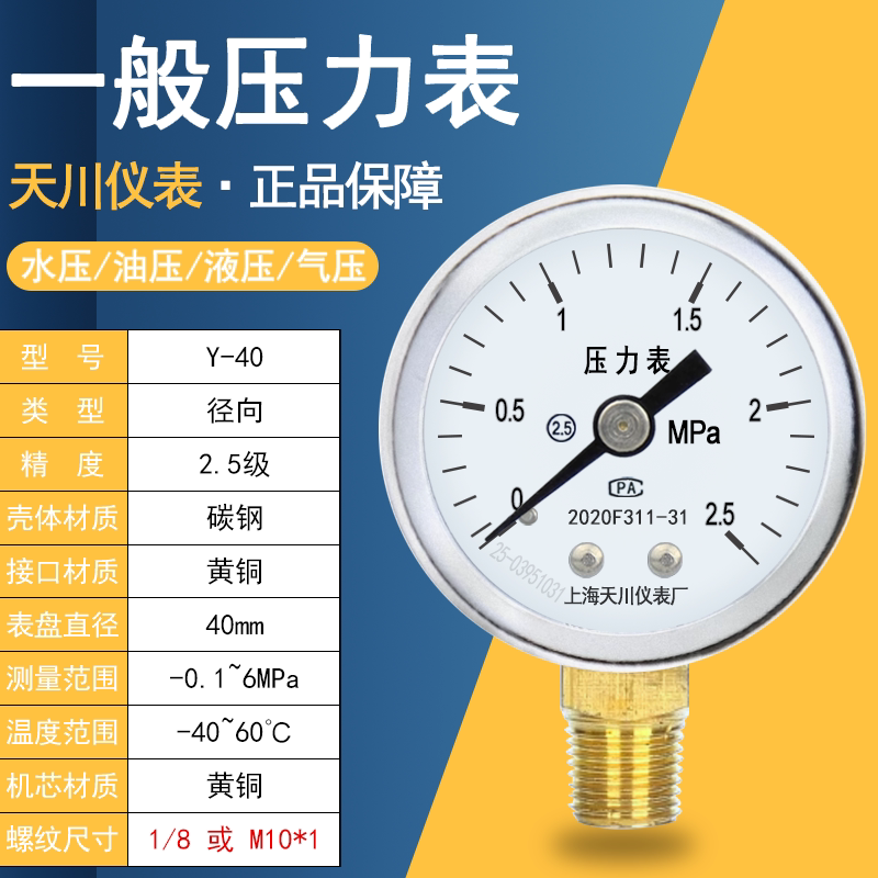 📚 上海天川Y-40压力表水压表气压表液压 小螺纹1/8M10*1负压表