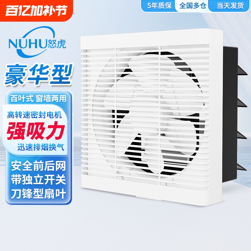 📚 怒虎换气扇家用卫生间排气扇厨房油烟抽风机窗式大吸力百叶排风扇