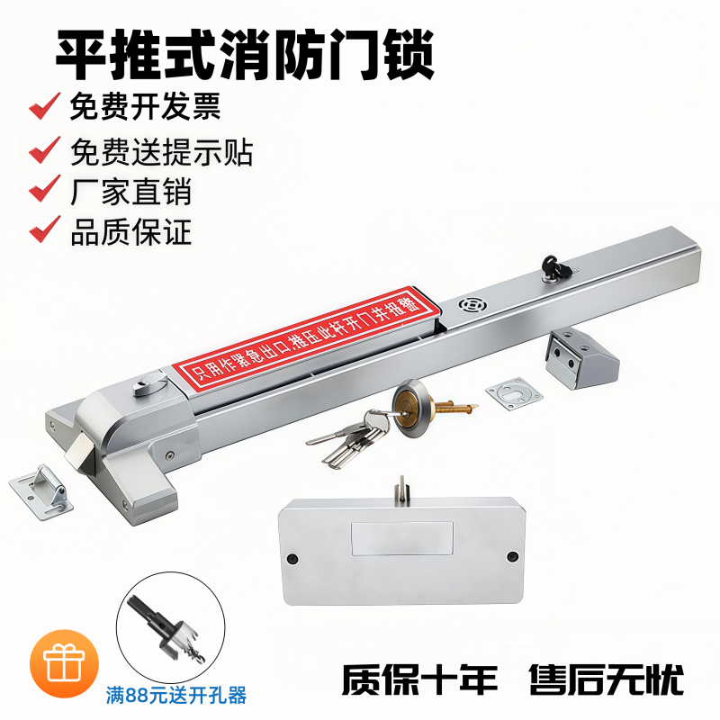 📚 平推式消防锁防火门锁报警消防门锁通道锁逃生锁防火门锁推杠锁