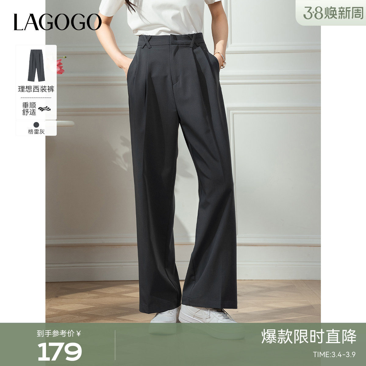 📚 LAGOGO灰色高腰百搭垂感西装裤女拉谷谷2025夏季新款休闲通勤裤子
