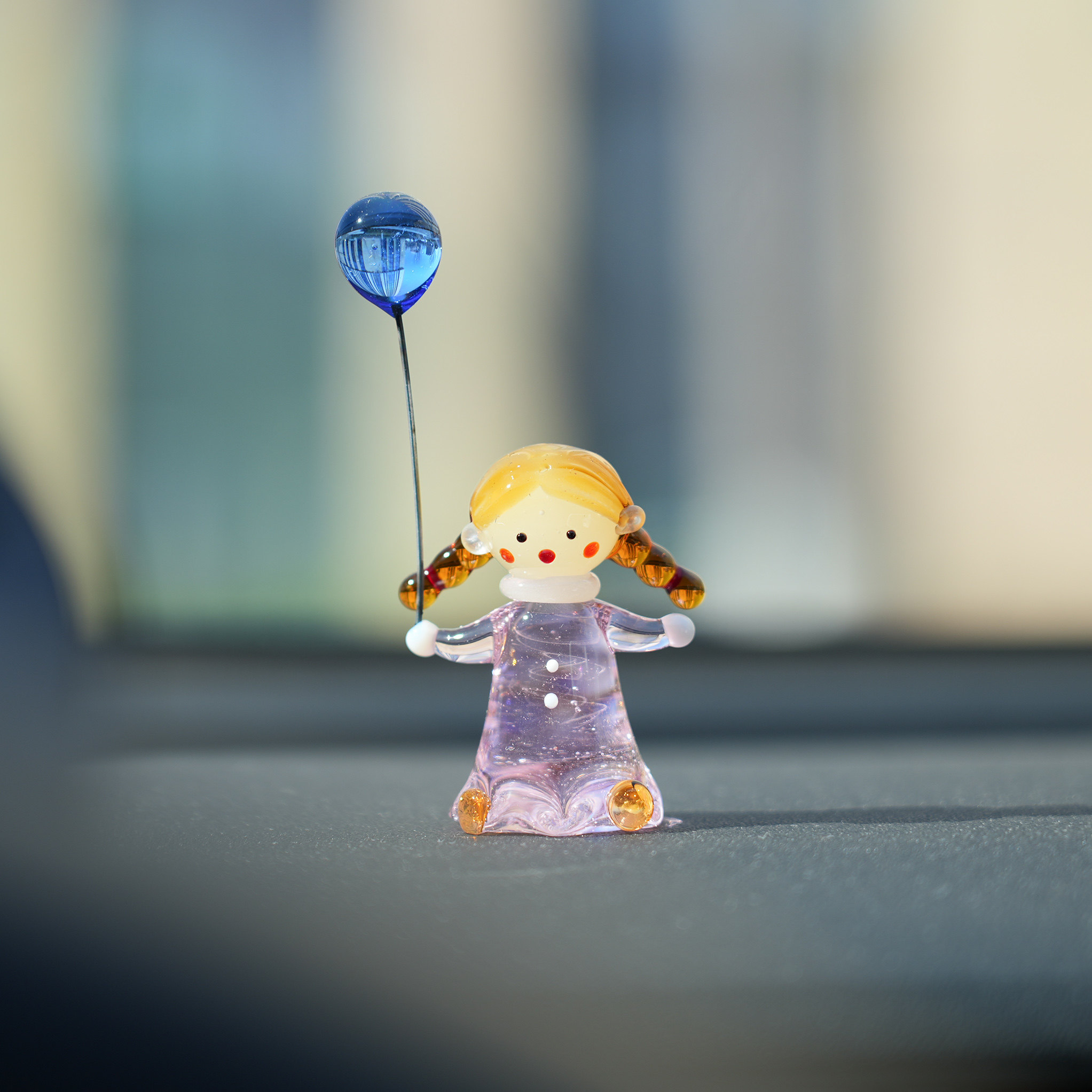 📚 琉璃手作可爱牵气球的双马尾小女孩车载桌面摆件粉红裙子女生礼物