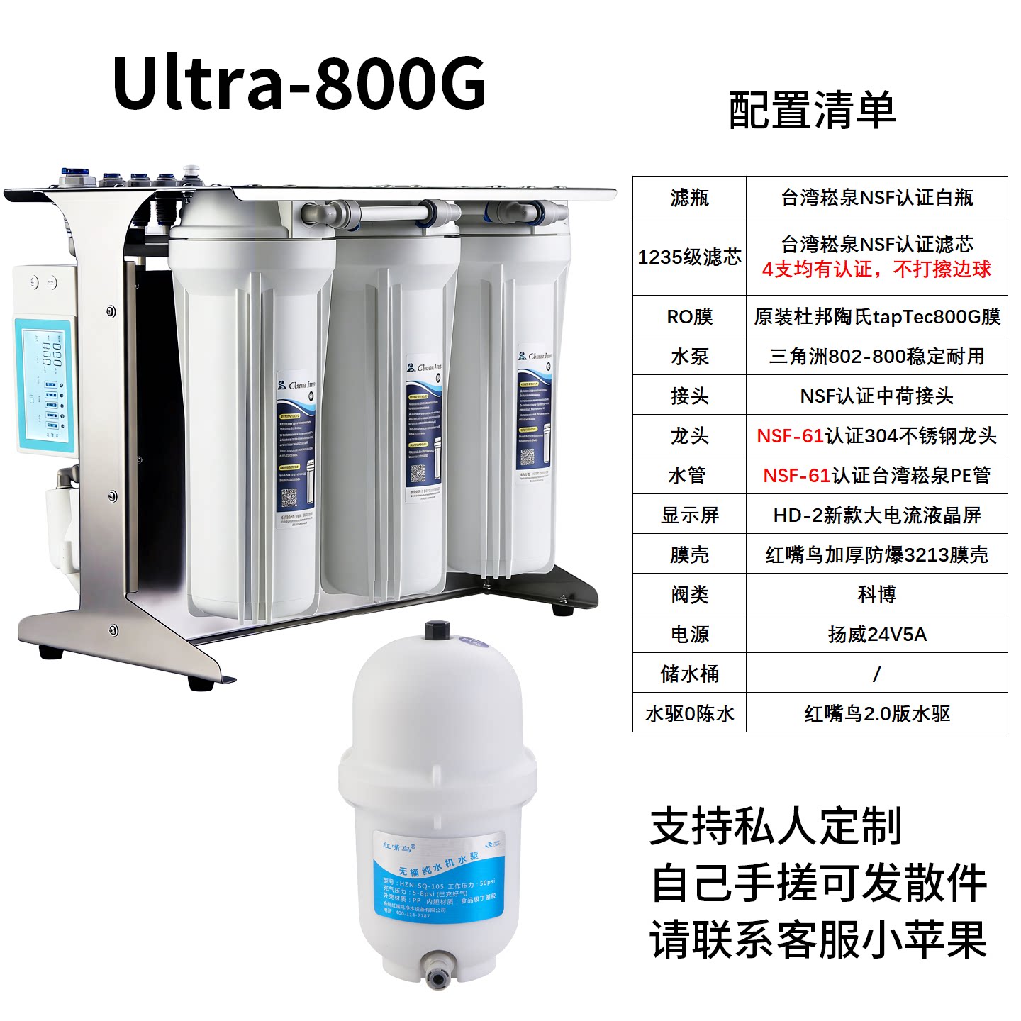 📚 DIY净水器红嘴鸟无桶纯水机1200G家用厨房直饮反渗透陶氏RO膜800G