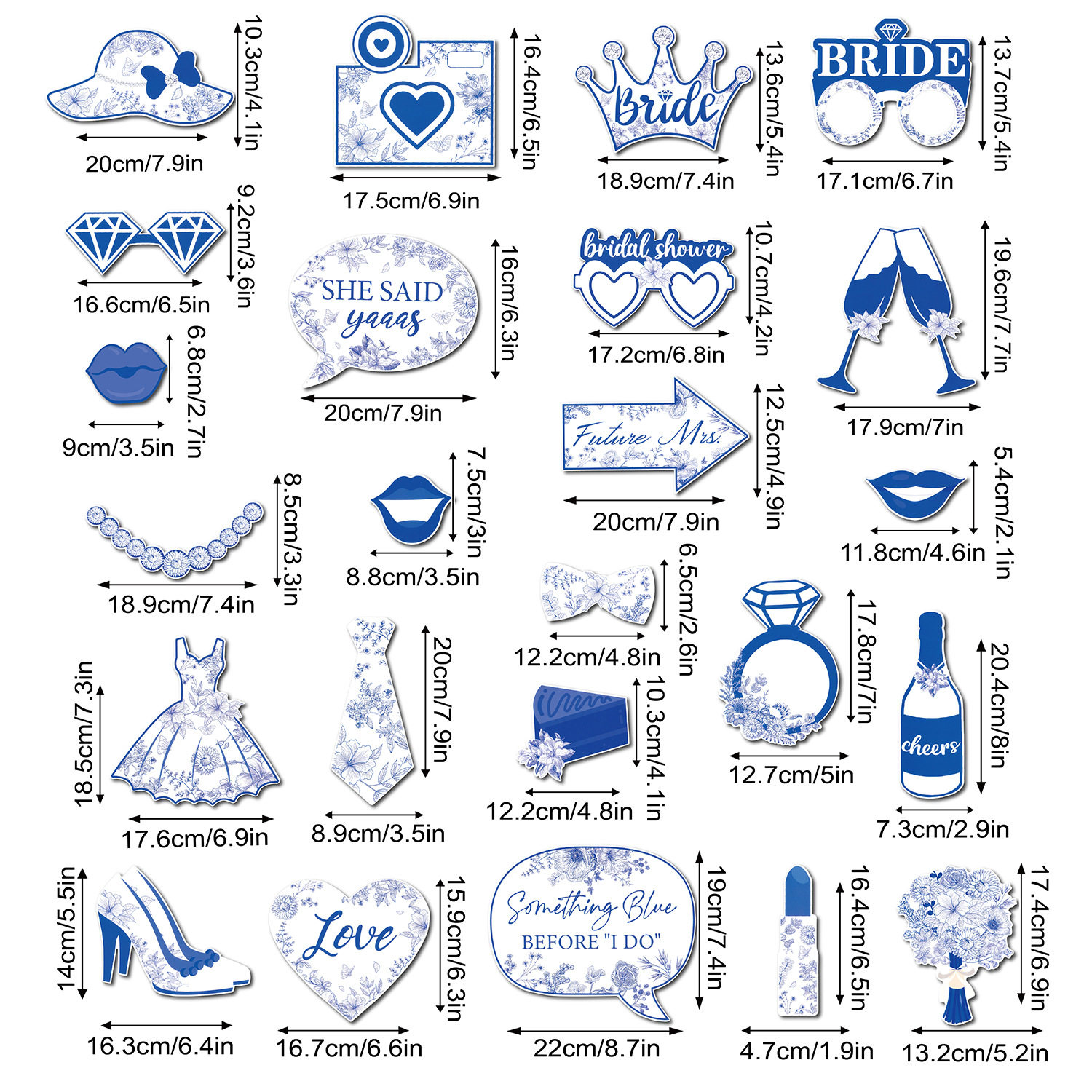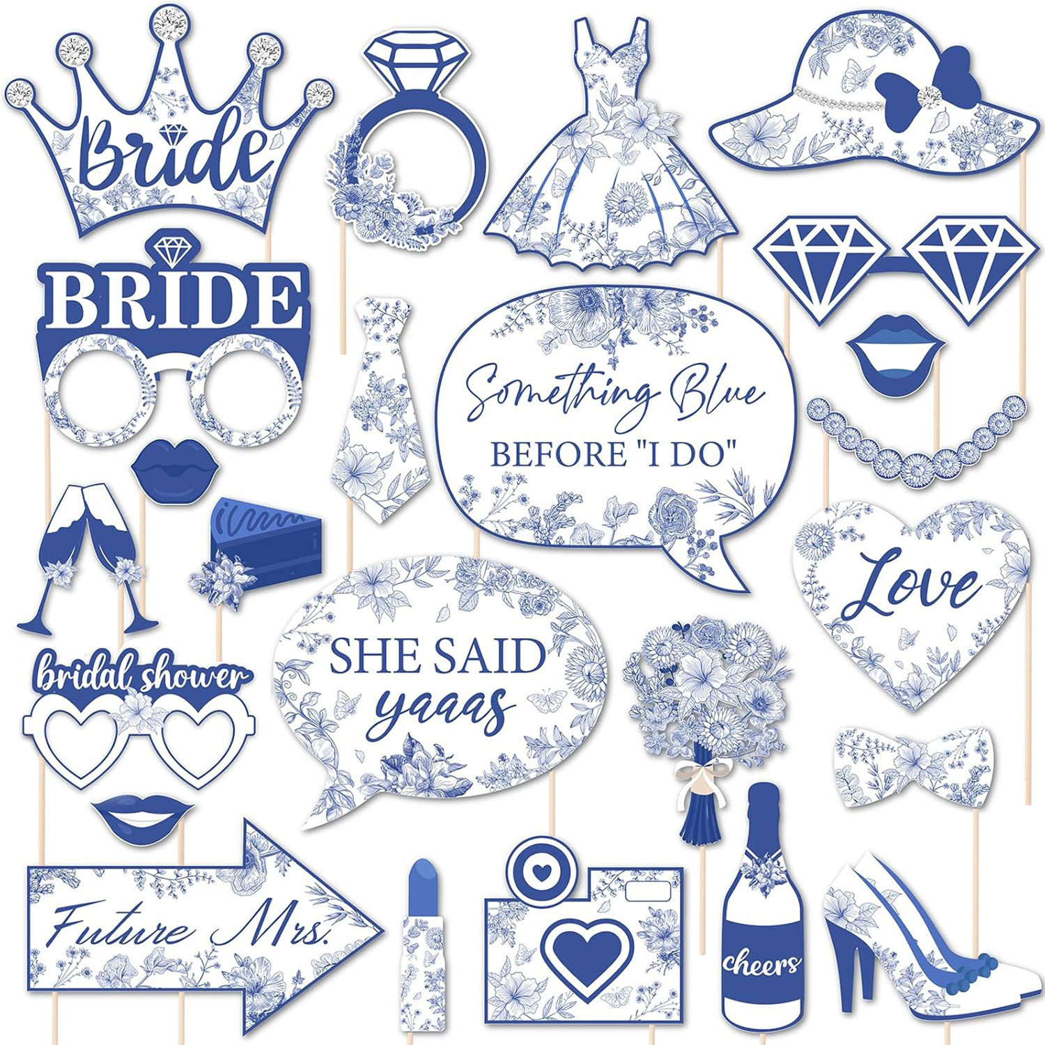 📚 Bride to be单身派对新娘婚前派对装饰品婚礼蓝色24件套拍照道具