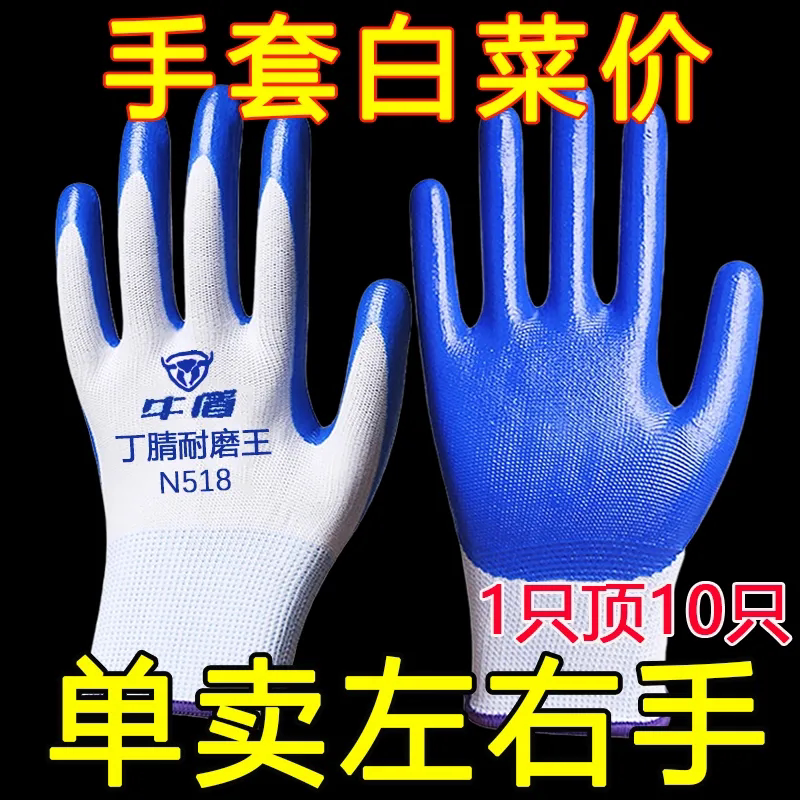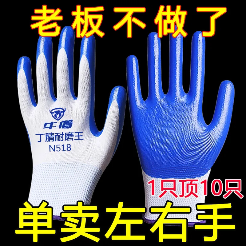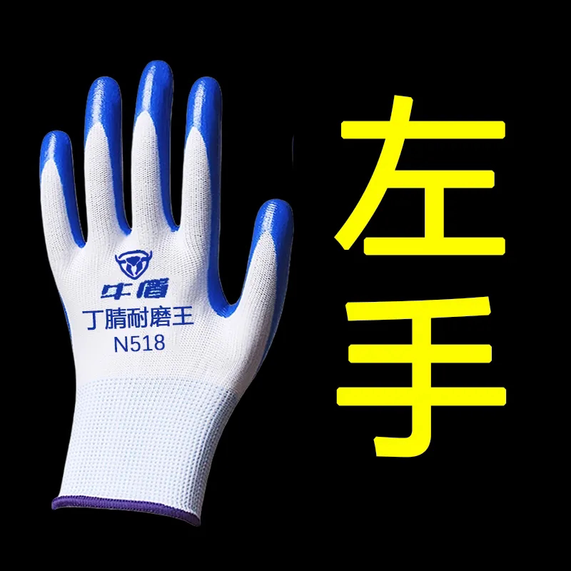 📚 单只左手右手正品牛盾N518劳保手套耐用耐磨防滑加厚丁腈干活手套
