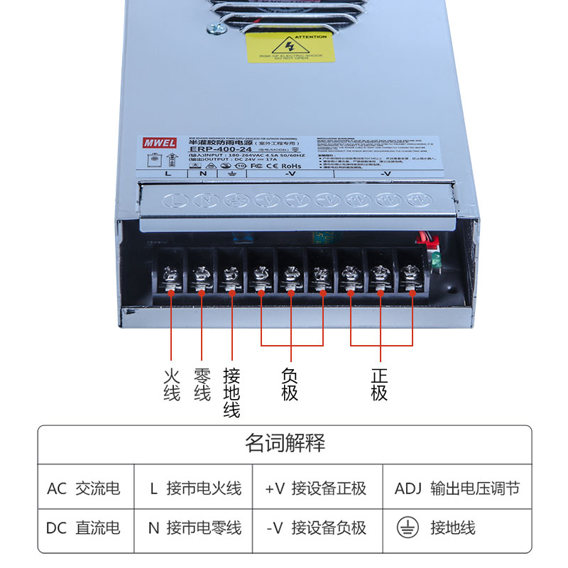 📚 mwel明伟ERP-400W-12V33A户外防雨开关电源广告牌发光字变压器24V