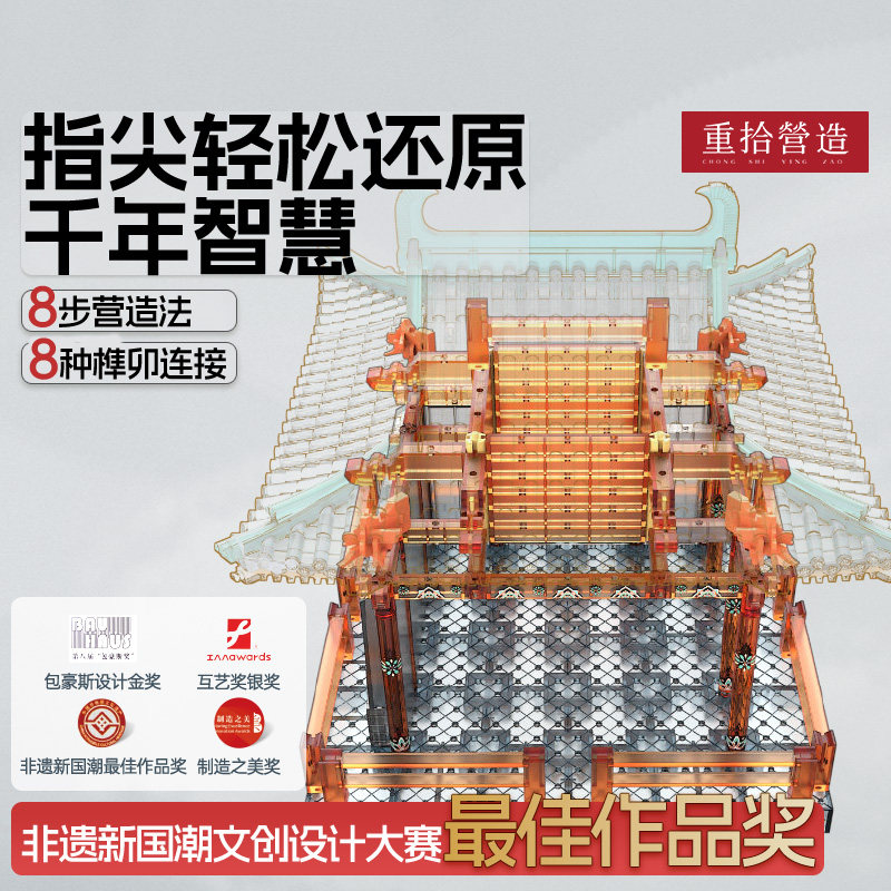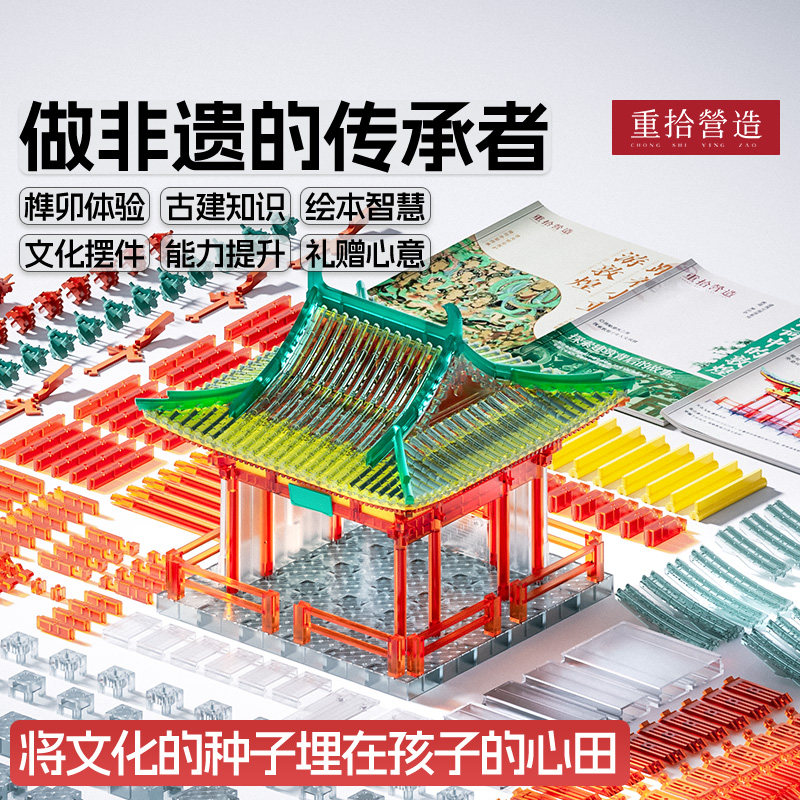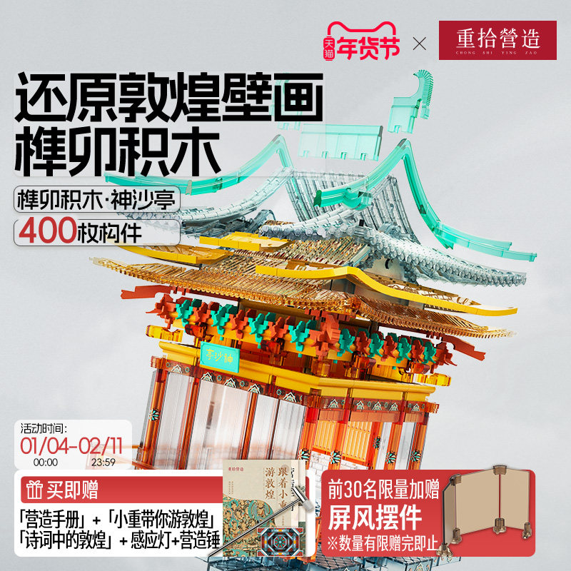 📚 重拾营造敦煌神沙亭彩色透明榫卯积木益智玩具摆件生日礼物送礼