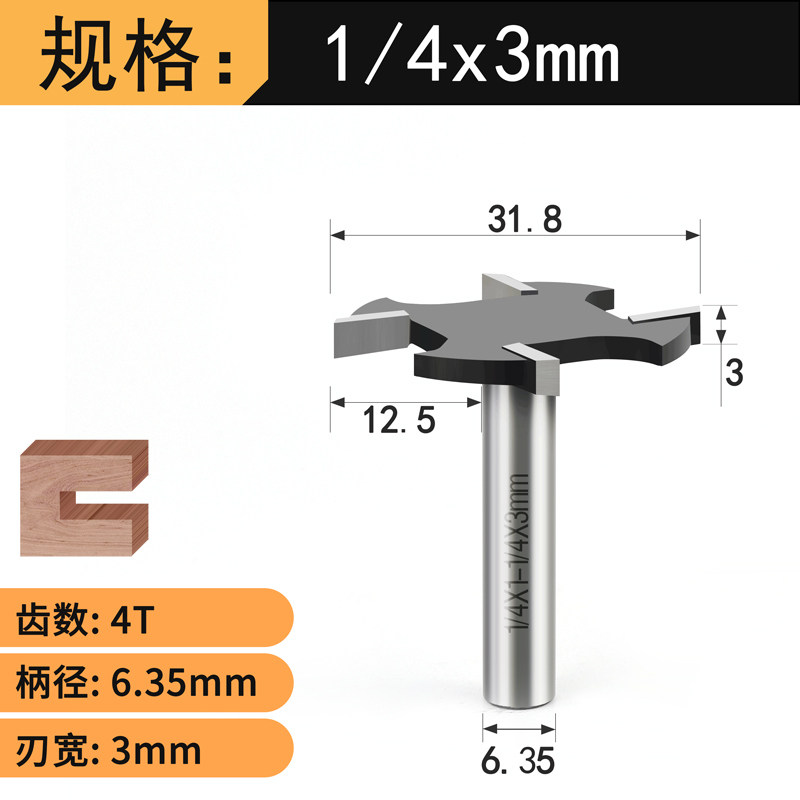 📚 乐匠公制四齿T型刀木工修边机开槽铣刀雕刻机铣槽G型拉手拉槽刀具