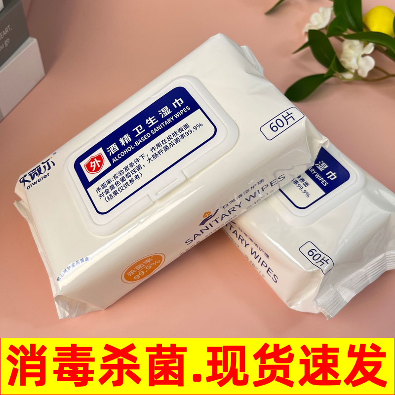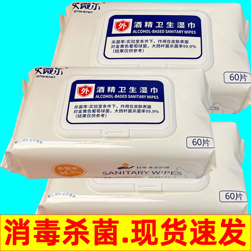 📚 艾微尔酒精乙醇湿纸巾大包60抽抽取式杀菌消毒抑菌复工产复学