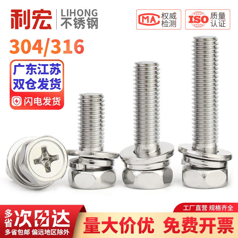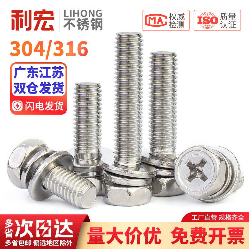 📚 金超304/316不锈钢十字外六角三组合螺丝凹穴组合螺栓M3M4M5M8M10
