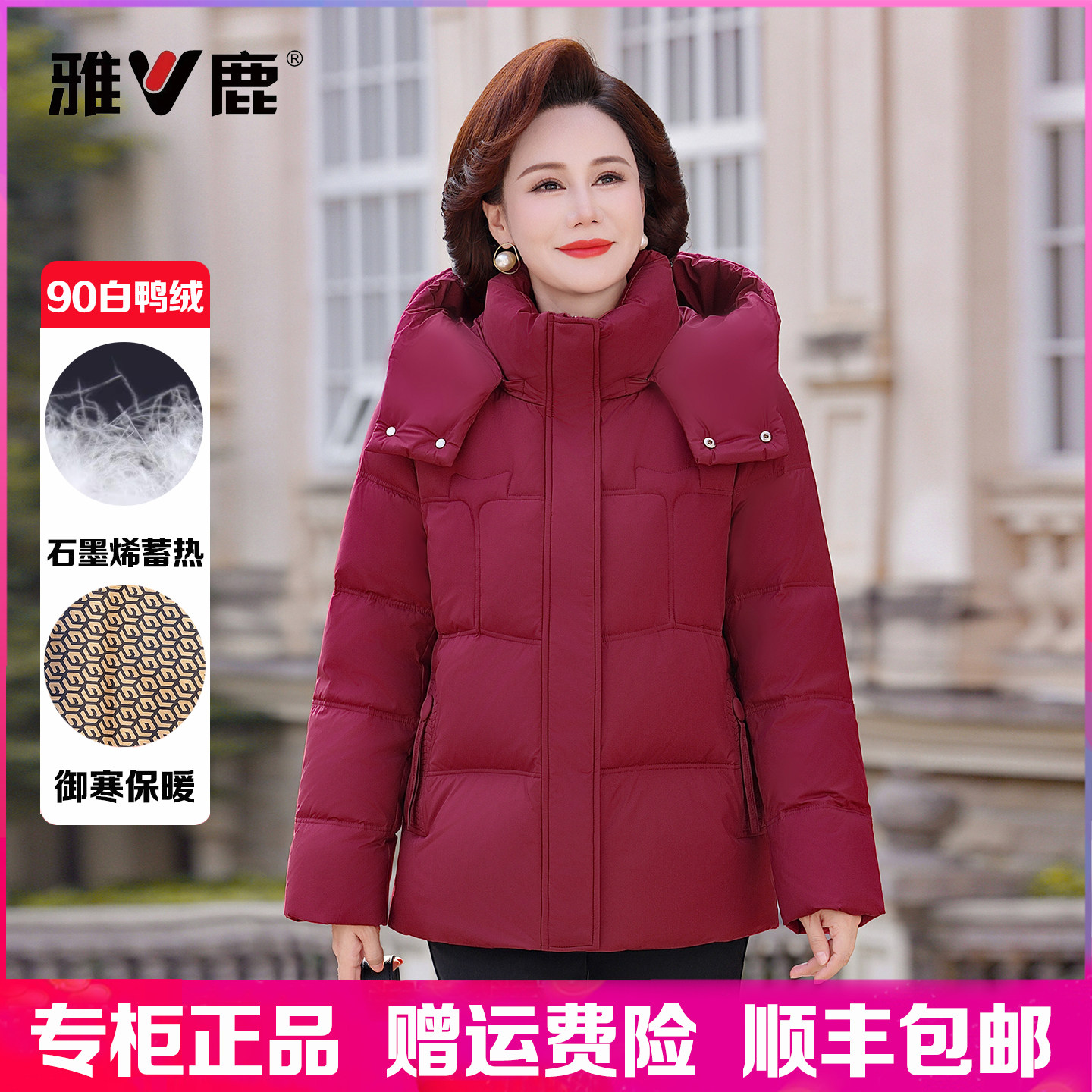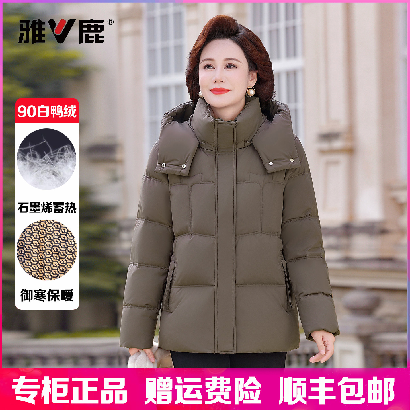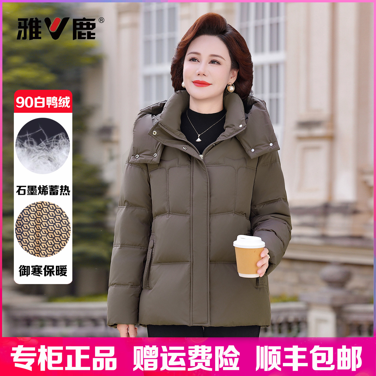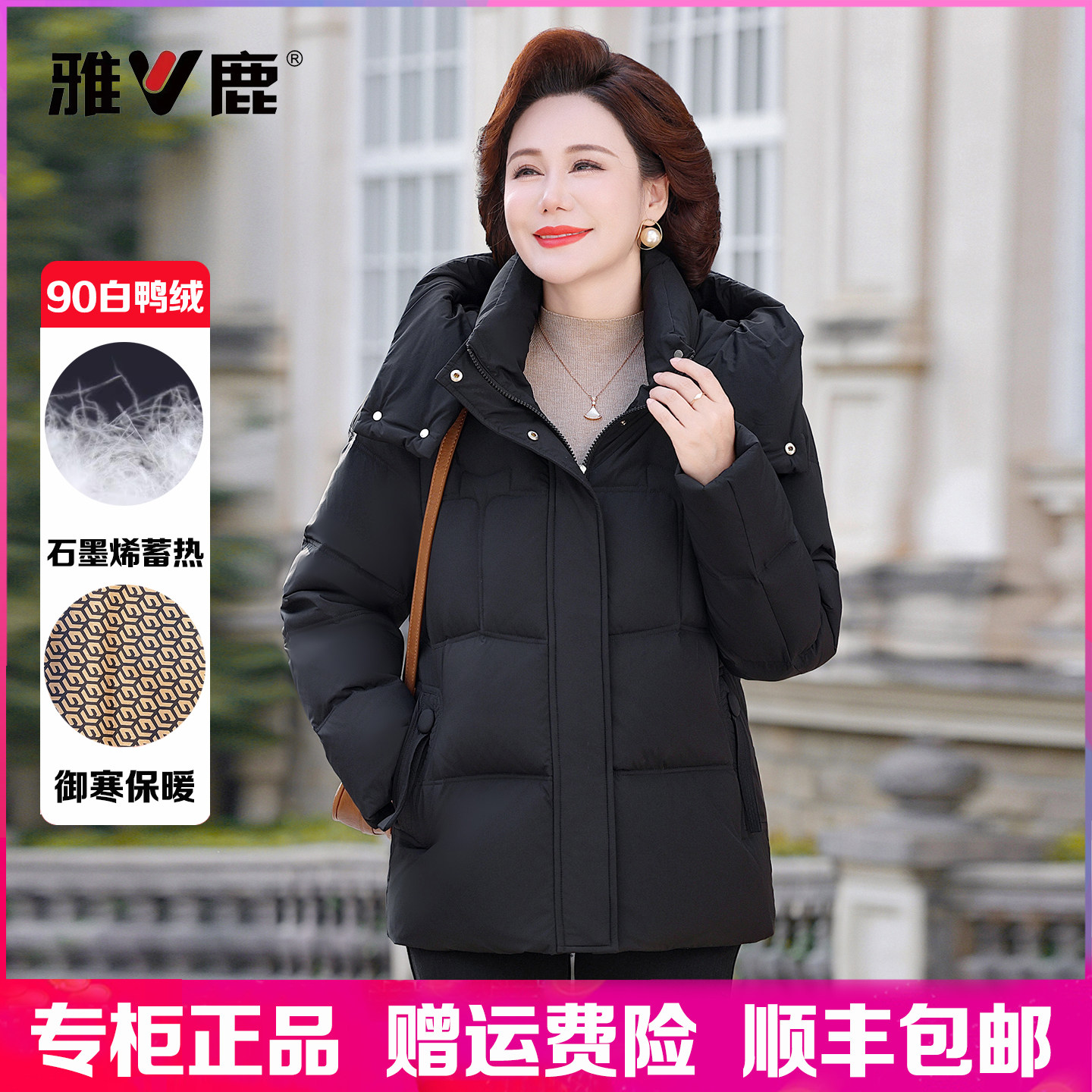 📚 雅鹿羽绒服女短款妈妈装2025冬新款中老年加厚白鸭绒大码宽松外套