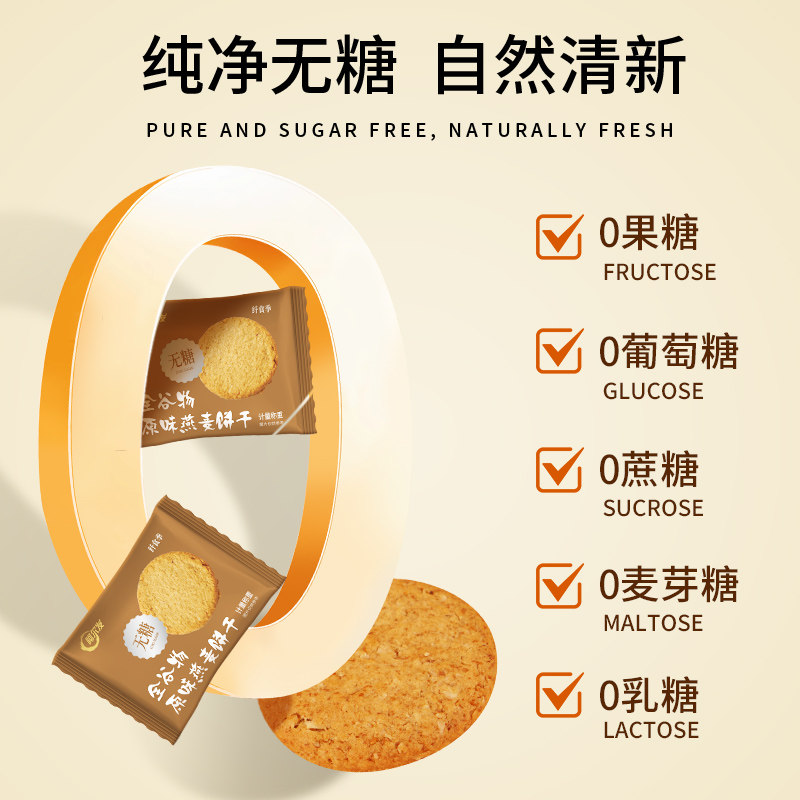 📚 阿尔发无糖全谷物原味燕麦饼干代餐粗粮忌糖人士适用饱腹零食