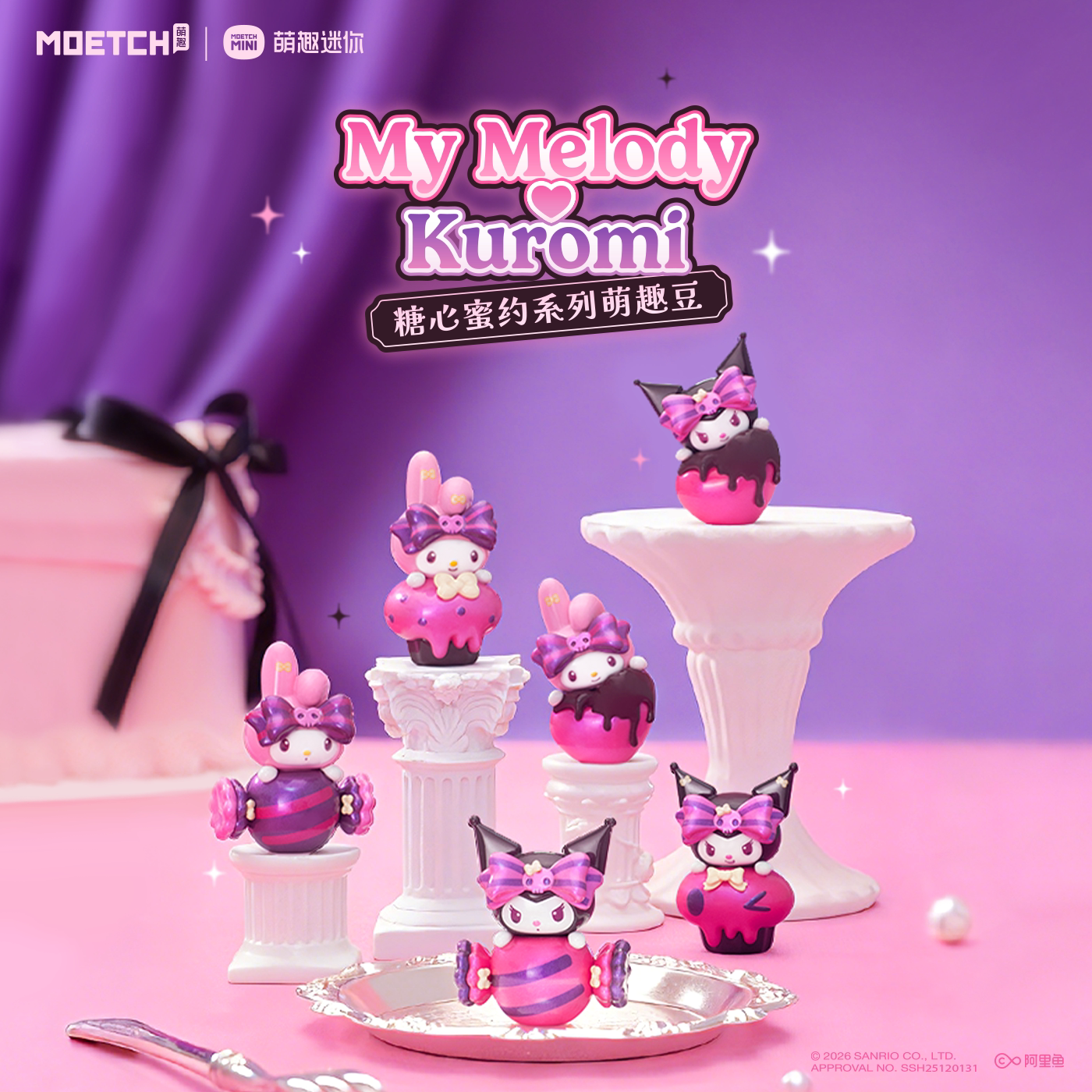 📚 库洛米&美乐蒂糖心密约系列萌趣豆盲盒kuromi手办摆件情人节礼物