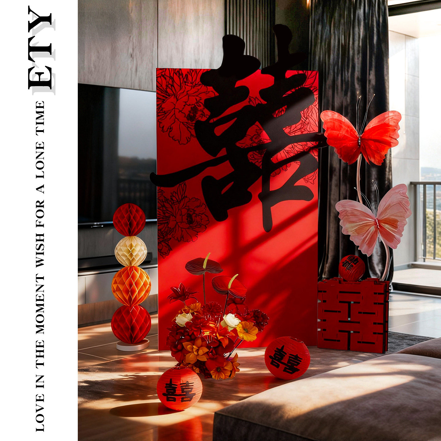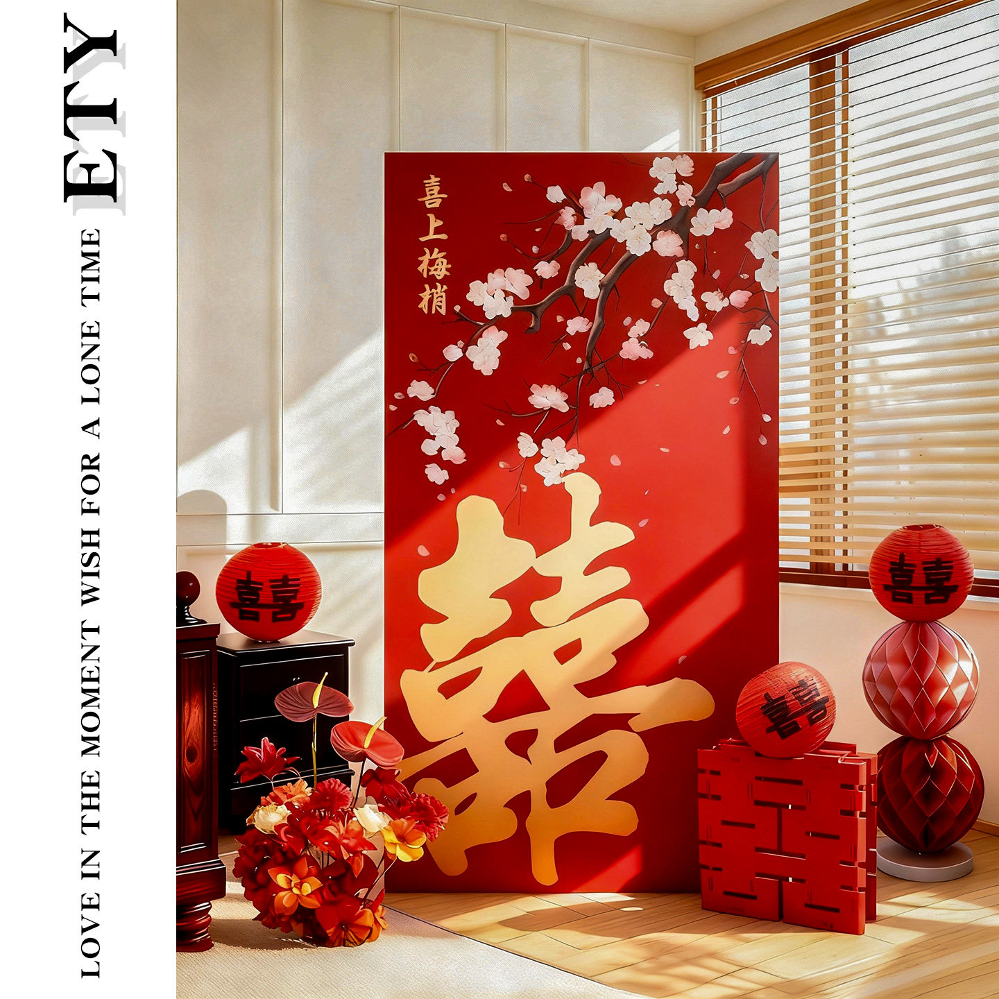 📚 新中式结婚喜字kt板装饰婚房氛围布置装饰新房迎宾牌客厅立体套装