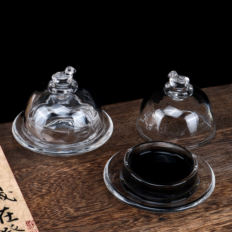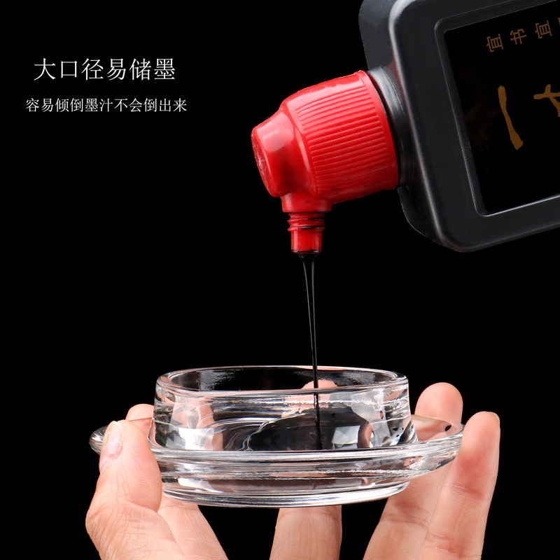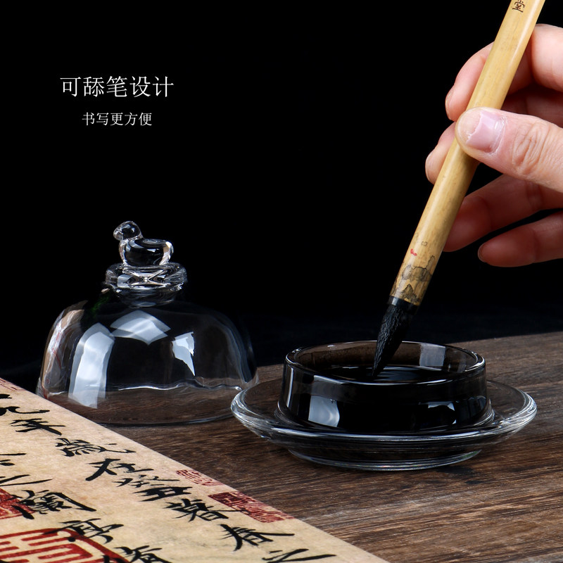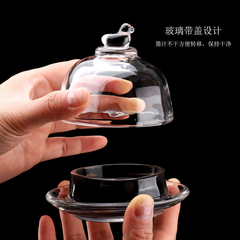 📚 光祖朱砂印泥盒水晶玻璃如意鸭带盖火锅砚墨池书法篆刻久放不干墨砚台墨盒墨盘墨碟墨汁儿童砚台毛笔墨水书法