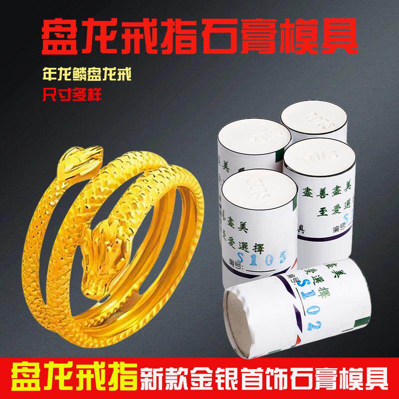 📚 新款神龙摆尾盘龙戒指石膏模具三圈龙形龙鳞金银加工首饰倒模模具