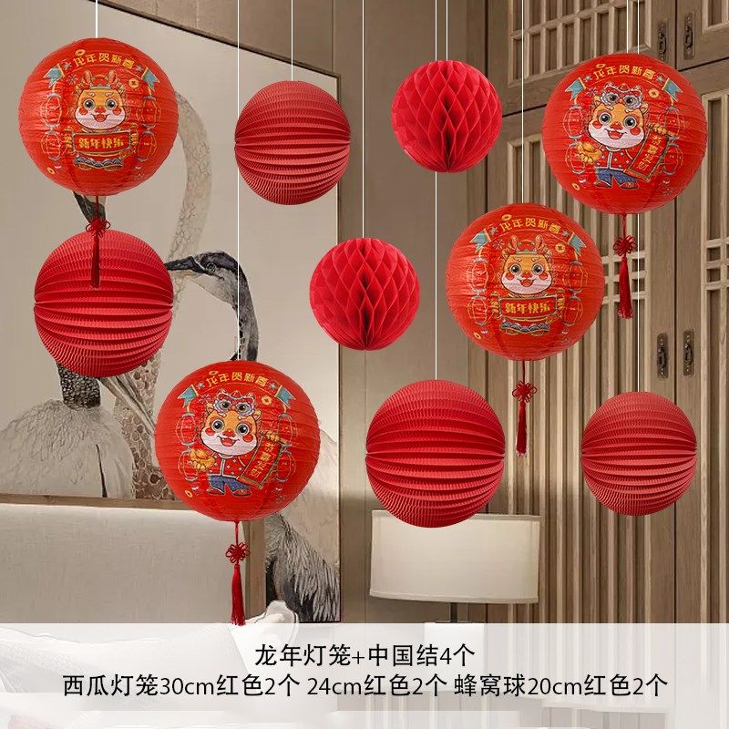 📚 2024新年元旦节装饰挂件红色纸灯笼珠宝连锁店铺商场橱窗龙年美陈