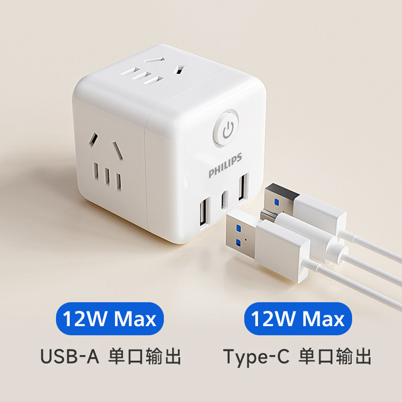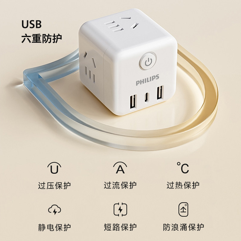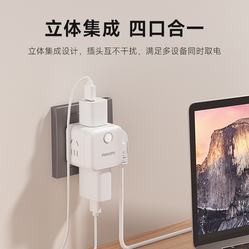 📚 飞利浦魔方插座转换器插头一转多USB接线板大学生宿舍接线板