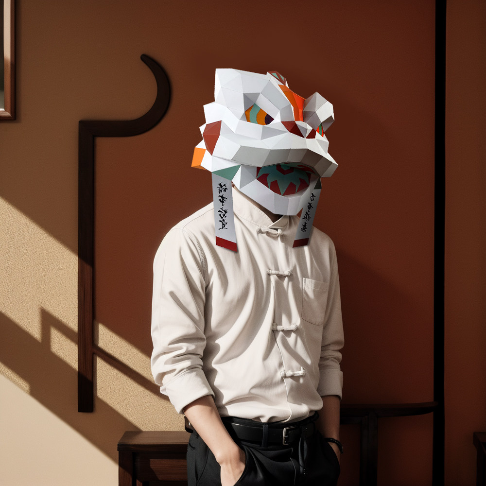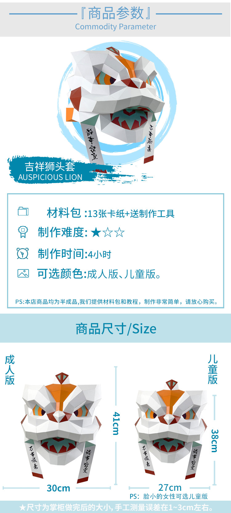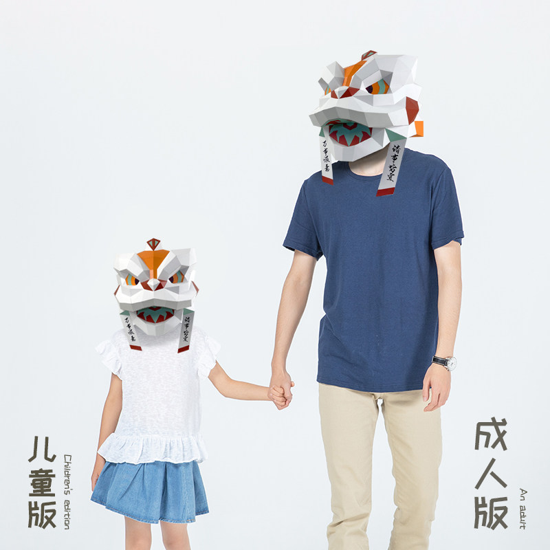 📚 可爱儿童面具中华醒狮小狮子头套舞狮服饰游神表演道具折纸玩具男