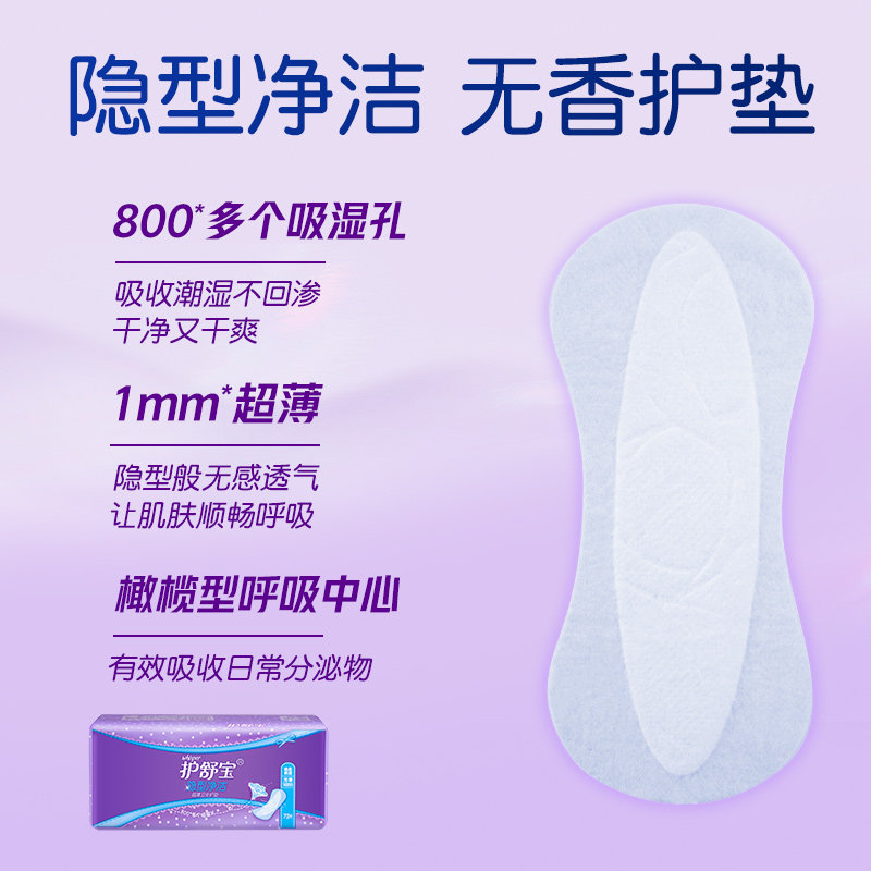📚 护舒宝隐型祛味超薄量少日用卫生巾护垫棉柔72片3包官方正品套装