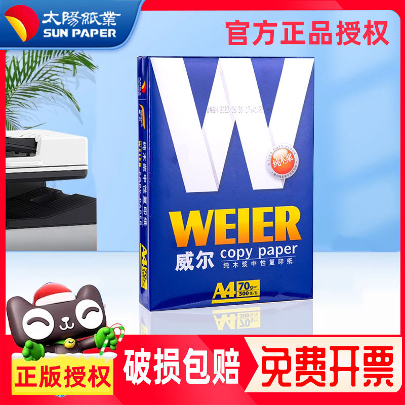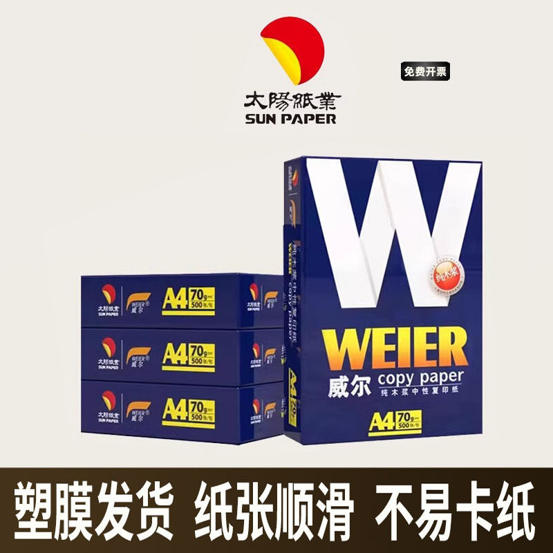 📚 太阳纸业威尔a4打印纸a4纸打印纸a4纸500张复印纸a4打印纸整箱批发a4纸打印纸打印a4纸打印机专用a4白纸