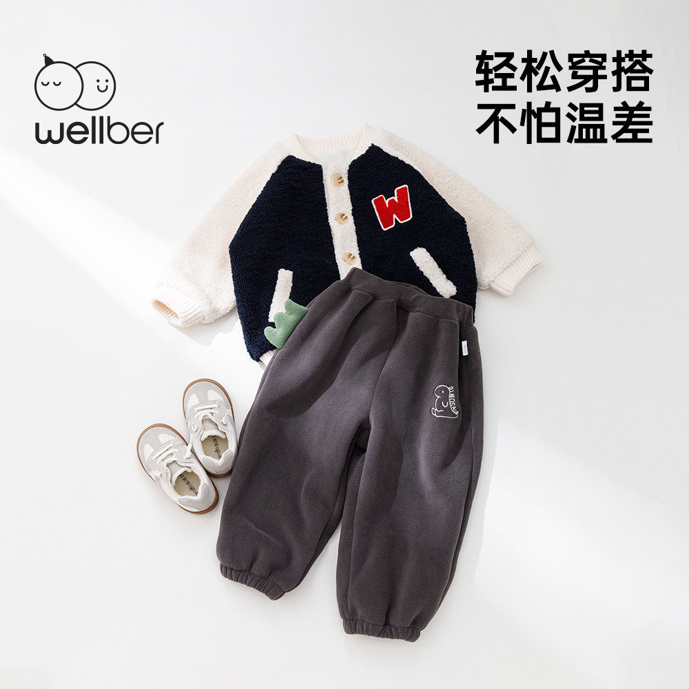 📚 威尔贝鲁儿童裤子秋冬款宝宝加绒长裤2025新款洋气男女童时髦保暖