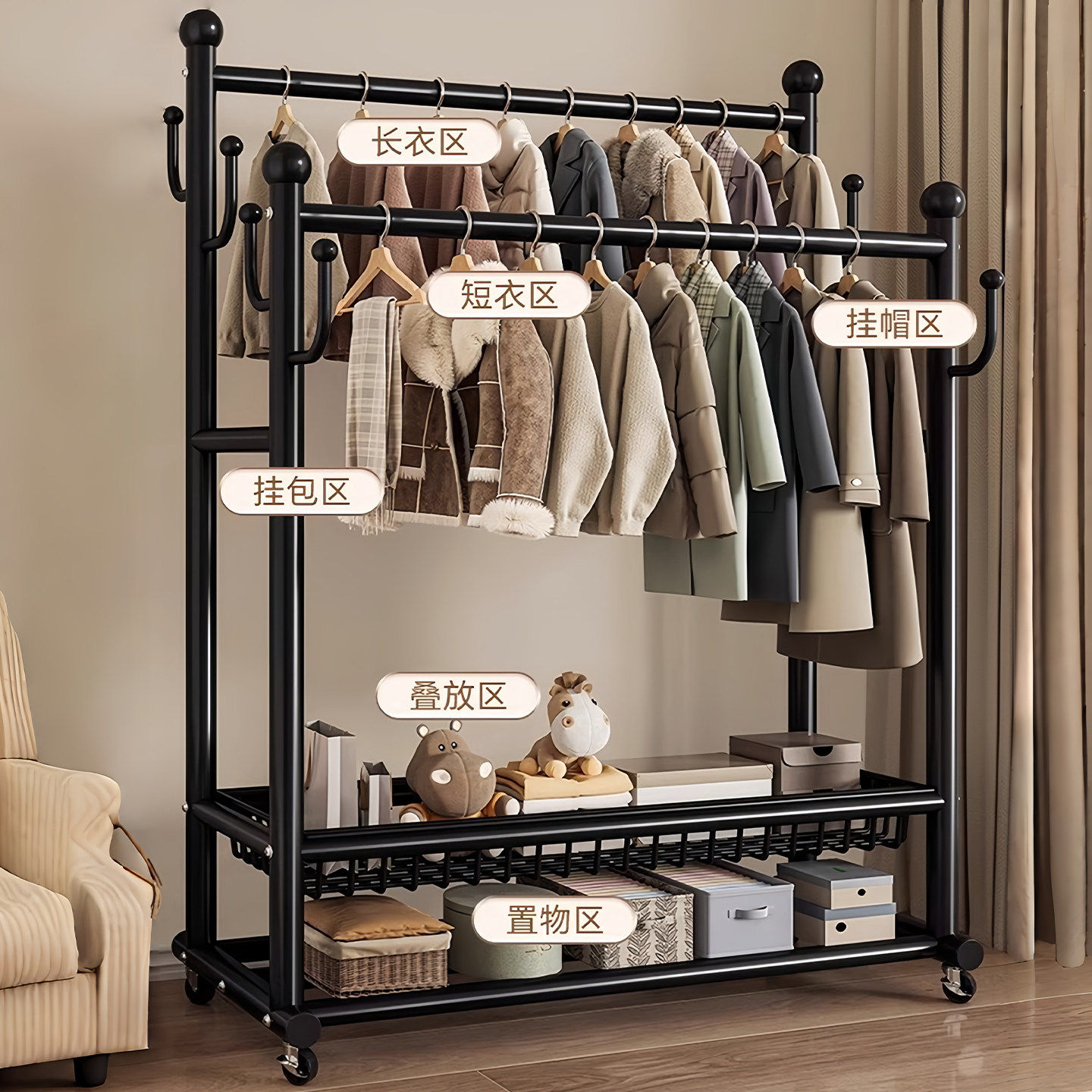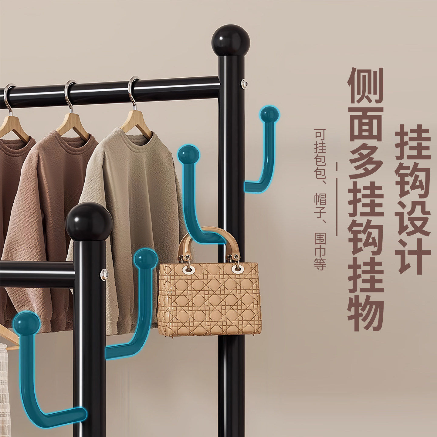 📚 简易衣帽架晾衣架落地家用卧室挂衣架阳台加粗室内可移动衣服架子