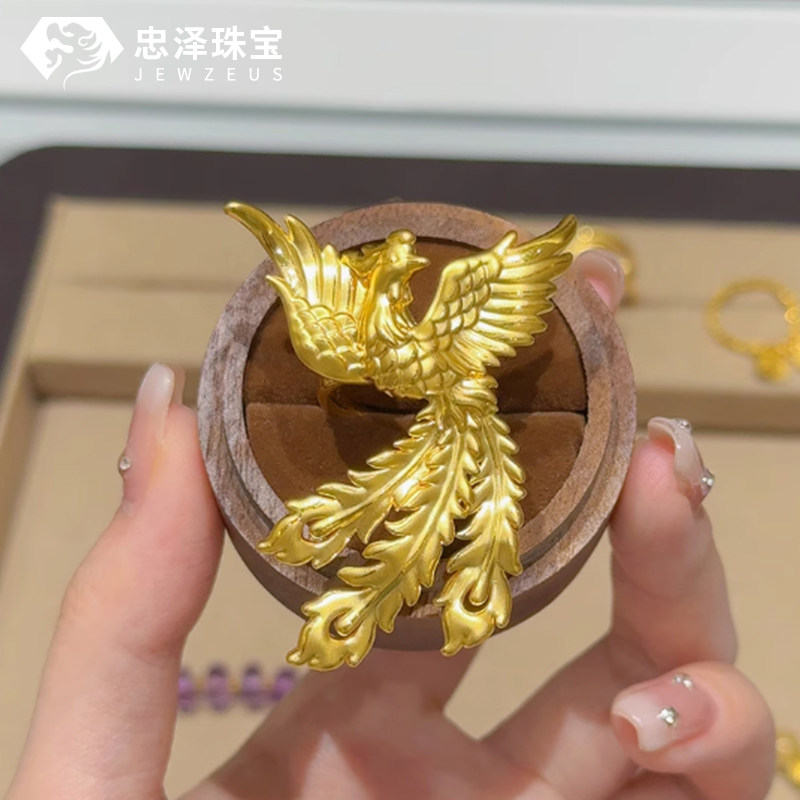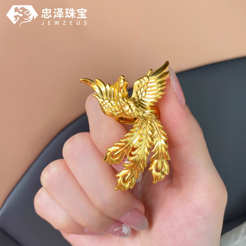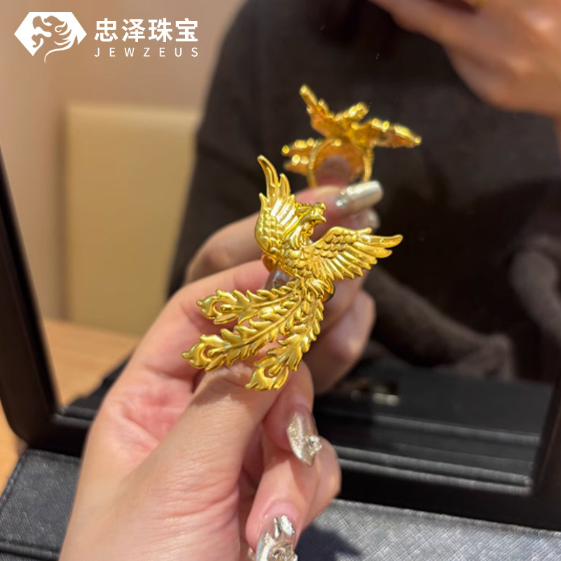 📚 黄金凤凰戒指女新款999足金凤舞九天闭口戒子指环生日送女友礼物
