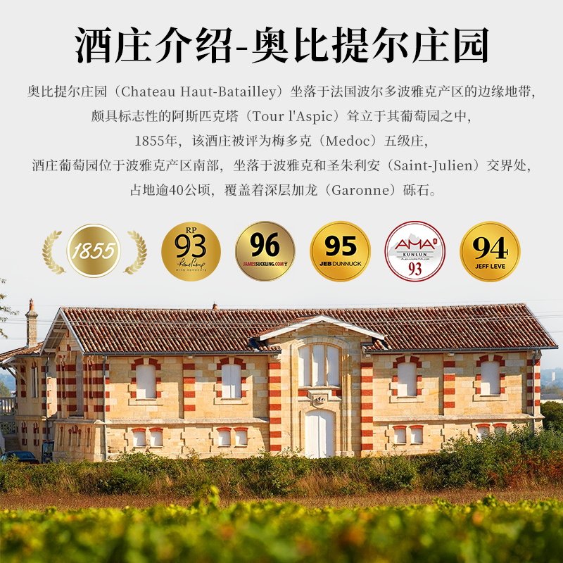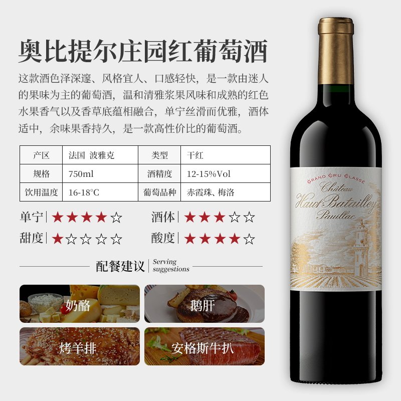 📚 骏德 奥比提尔庄园红酒法国波尔多波亚克1855五级庄红葡萄酒送礼