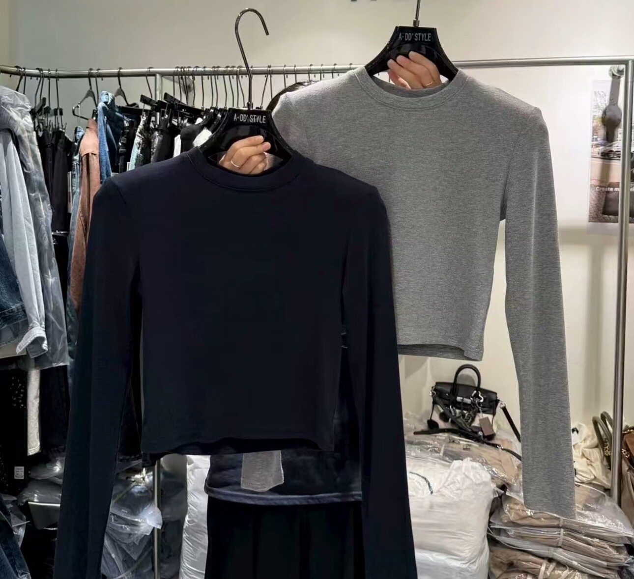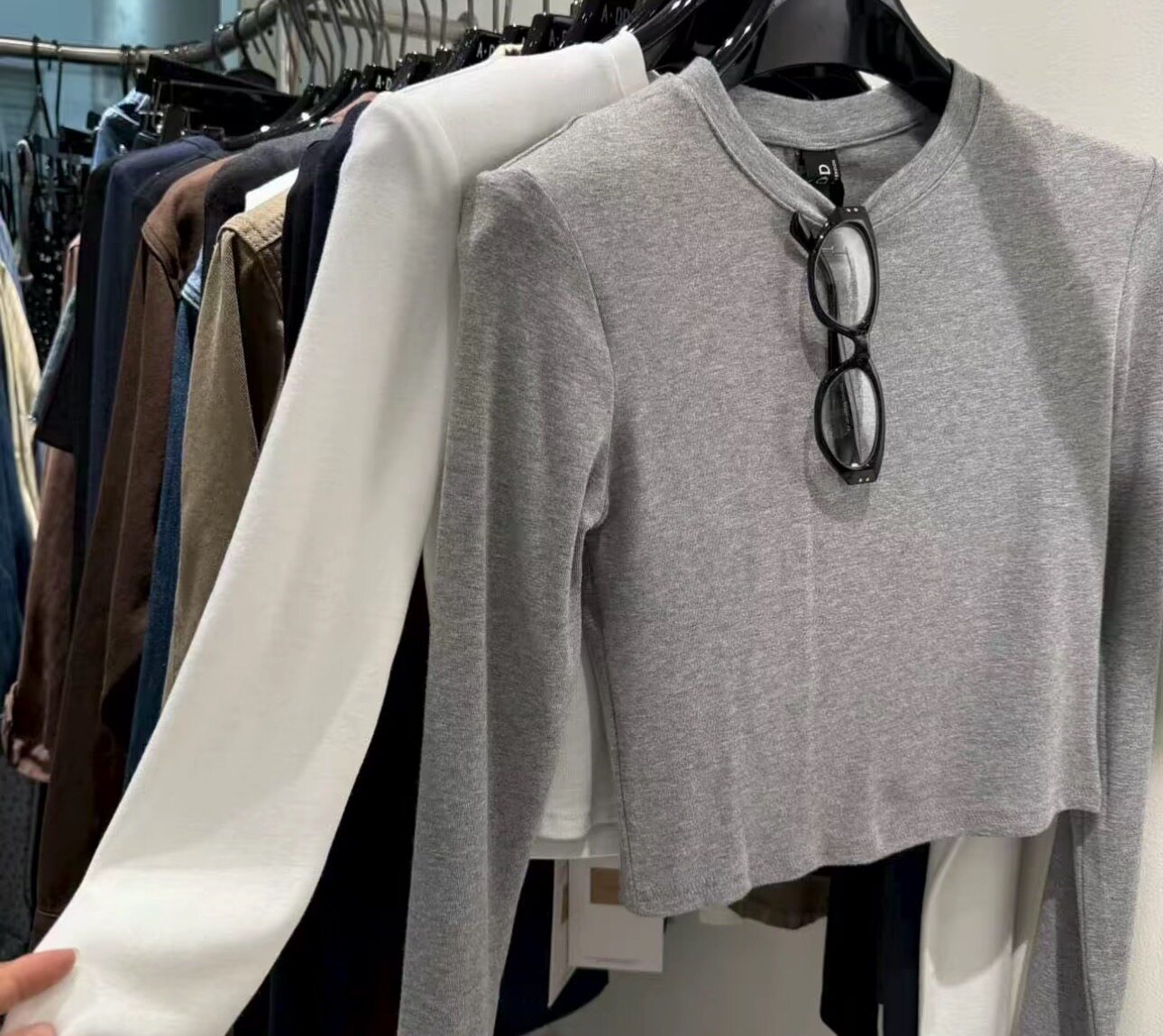 📚 ADD净版显瘦圆领打底衫25秋冬新款垫肩女修身显瘦短款长袖T恤上衣