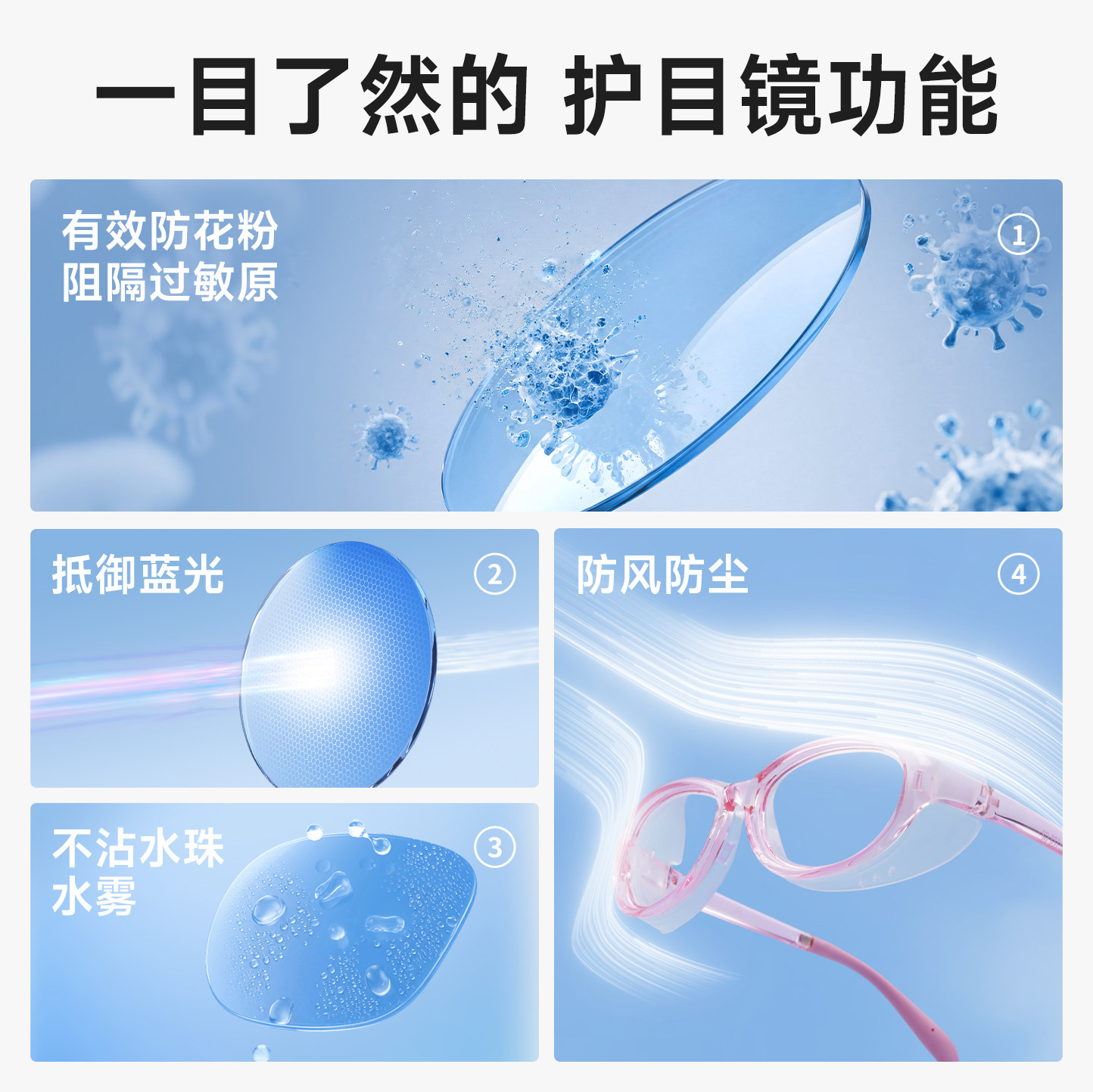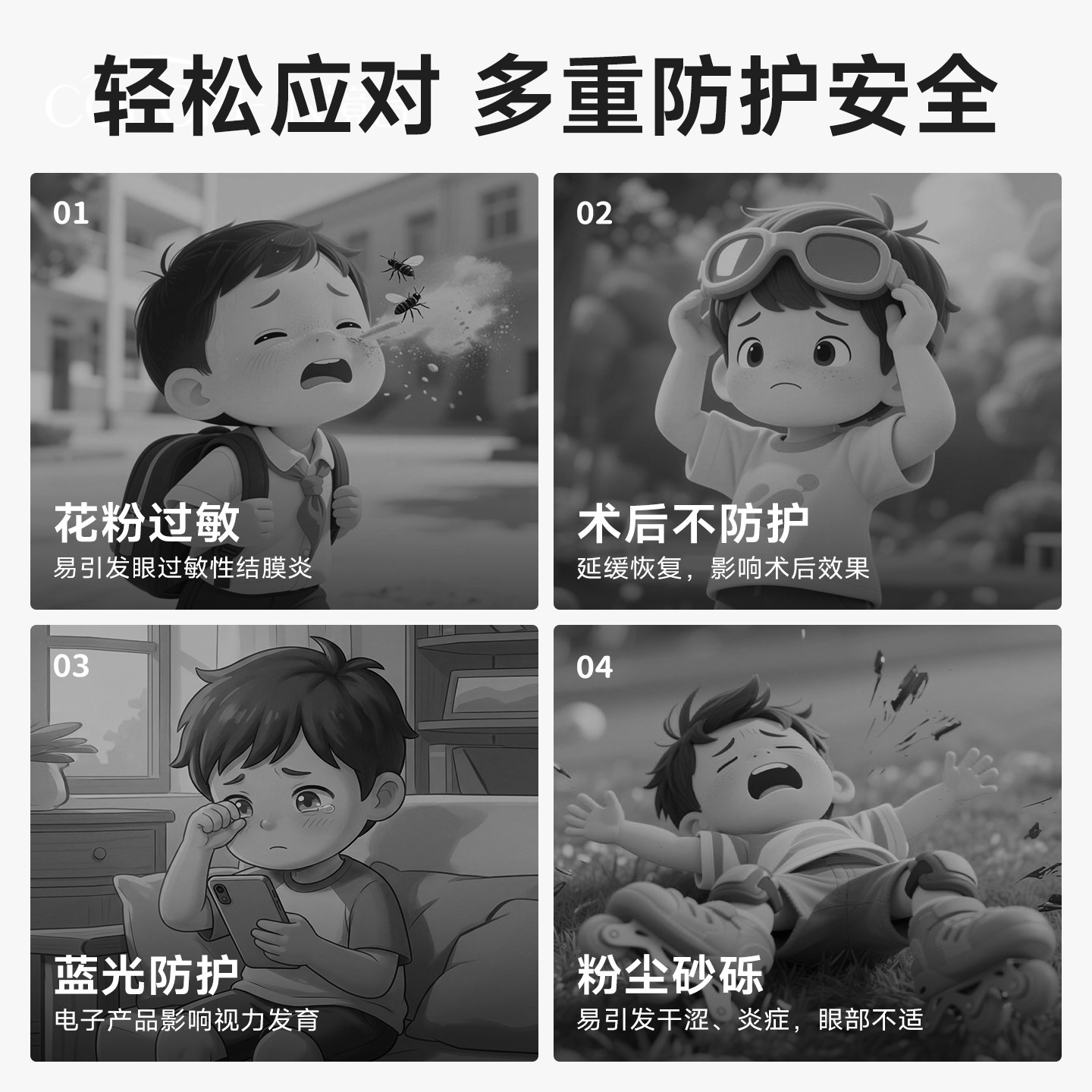 📚 儿童防花粉柳絮过敏防风护目镜全包围眼镜湿房镜小孩专用防护眼睛